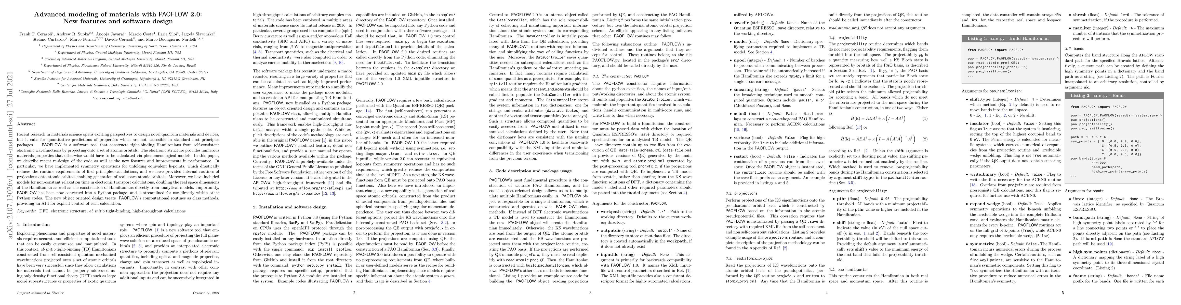 Recent research in materials science opens exciting perspectives to design novel quantum materials and devices, but it calls for quantitative predictions of properties which are not accessible in standard first principles packages. PAOFLOW is a software tool that constructs tight-binding Hamiltonians from self-consistent electronic wavefunctions by projecting onto a set of atomic orbitals. The electronic structure provides numerous materials properties that otherwise would have to be calculated via phenomenological models. In this paper, we describe recent re-design of the code as well as the new features and improvements in performance. In particular, we have implemented symmetry operations for unfolding equivalent k-points, which drastically reduces the runtime requirements of first principles calculations, and we have provided internal routines of projections onto atomic orbitals enabling generation of real space atomic orbitals. Moreover, we have included models for non-constant relaxation time in electronic transport calculations, doubling the real space dimensions of the Hamiltonian as well as the construction of Hamiltonians directly from analytical models. Importantly, PAOFLOW has been now converted into a Python package, and is streamlined for use directly within other Python codes. The new object oriented design treats PAOFLOWs computational routines as class methods, providing an API for explicit control of each calculation.