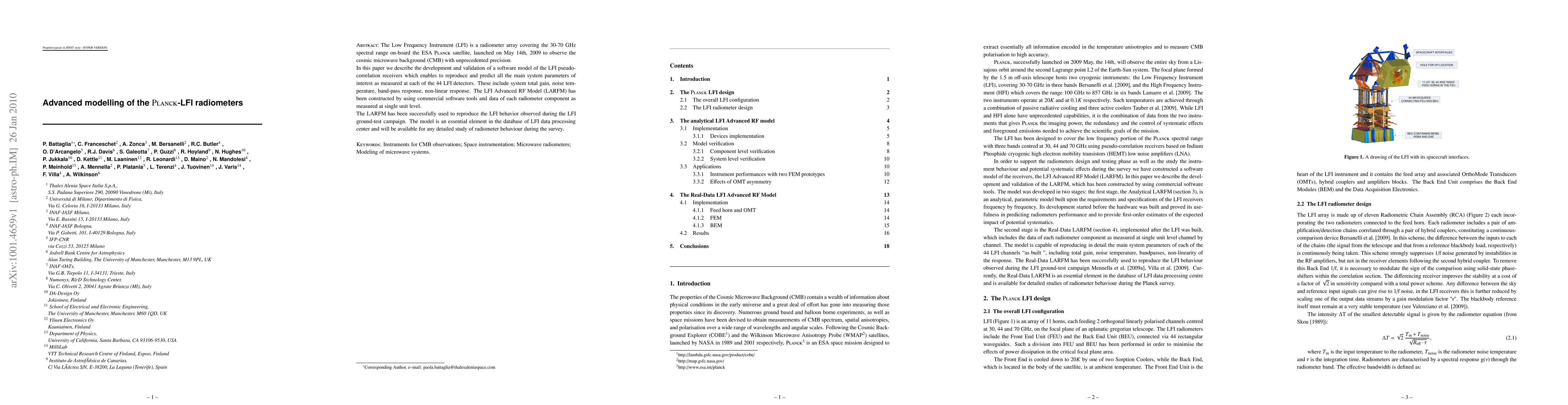 This paper details the development and validation of an advanced software model for the Planck-LFI radiometers, which accurately reproduces key parameters such as total gain, noise temperature, and non-linear response. The LFI Advanced RF Model (LARFM) is crucial for detailed studies and data processing during the survey.