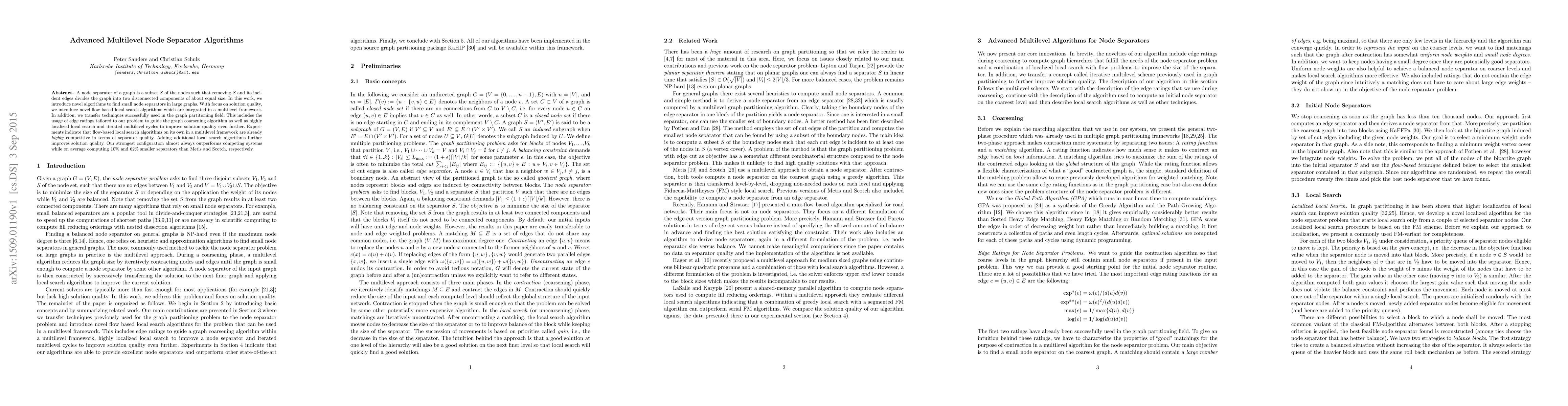 This paper introduces advanced multilevel algorithms for finding small node separators in large graphs, employing flow-based local search and integrating techniques from graph partitioning. Experiments show that the proposed methods outperform existing systems, often yielding significantly smaller separators.