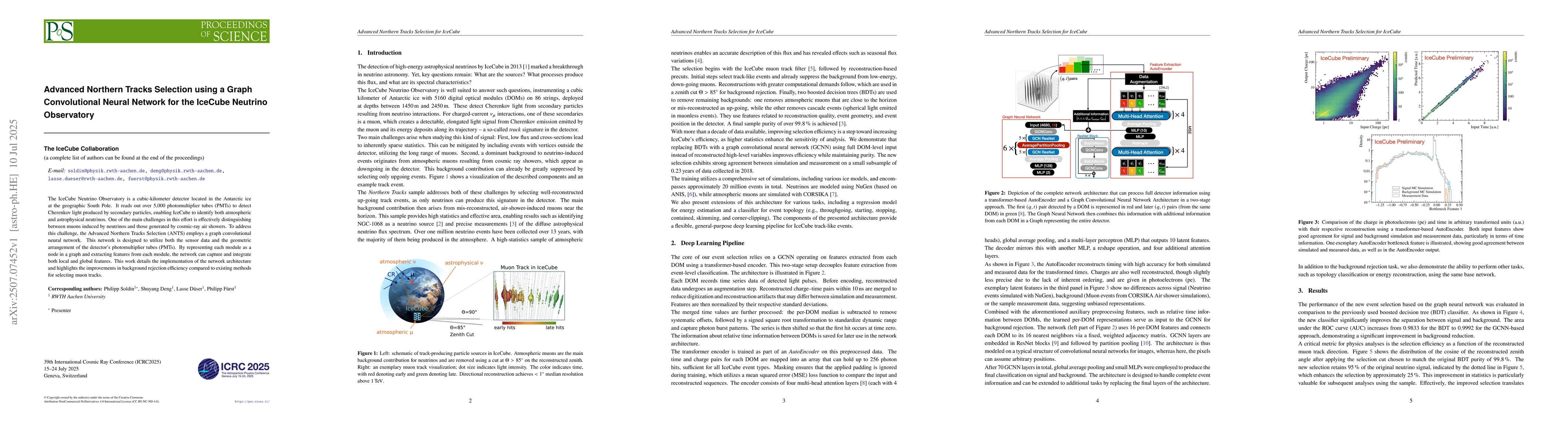 The IceCube Neutrino Observatory is a cubic-kilometer detector located in the Antarctic ice at the geographic South Pole. It reads out over 5,000 photomultiplier tubes (PMTs) to detect Cherenkov light produced by secondary particles, enabling IceCube to identify both atmospheric and astrophysical neutrinos. One of the main challenges in this effort is effectively distinguishing between muons induced by neutrinos and those generated by cosmic-ray air showers. To address this challenge, the Advanced Northern Tracks Selection (ANTS) employs a graph convolutional neural network. This network is designed to utilize both the sensor data and the geometric arrangement of the detector's photomultiplier tubes (PMTs). By representing each module as a node in a graph and extracting features from each module, the network can capture and integrate both local and global features. This work details the implementation of the network architecture and highlights the improvements in background rejection efficiency compared to existing methods for selecting muon tracks.