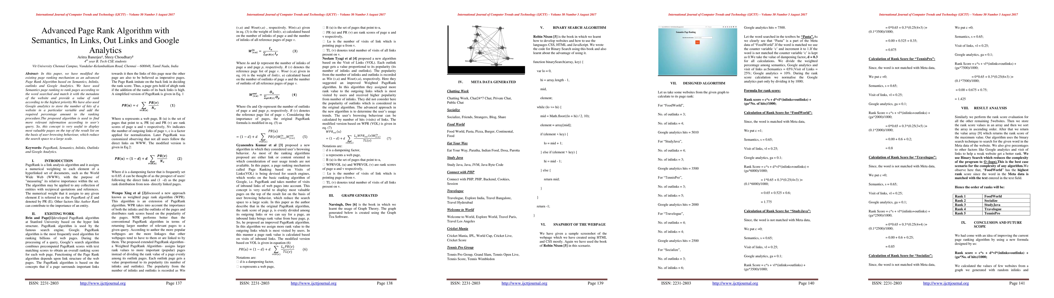 A new page ranking algorithm combines semantics, inlinks, outlinks, and Google Analytics to rank web pages according to user behavior, prioritizing most valuable content.