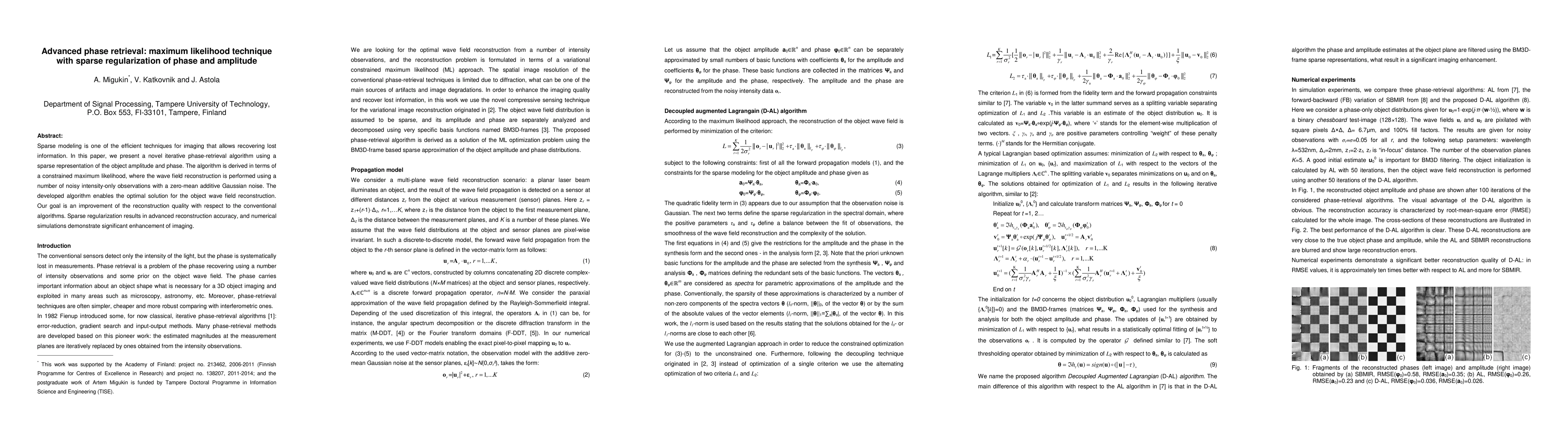 A novel phase-retrieval algorithm using sparse regularization improves imaging accuracy by leveraging noisy intensity-only observations and enhancing reconstruction quality compared to conventional methods.