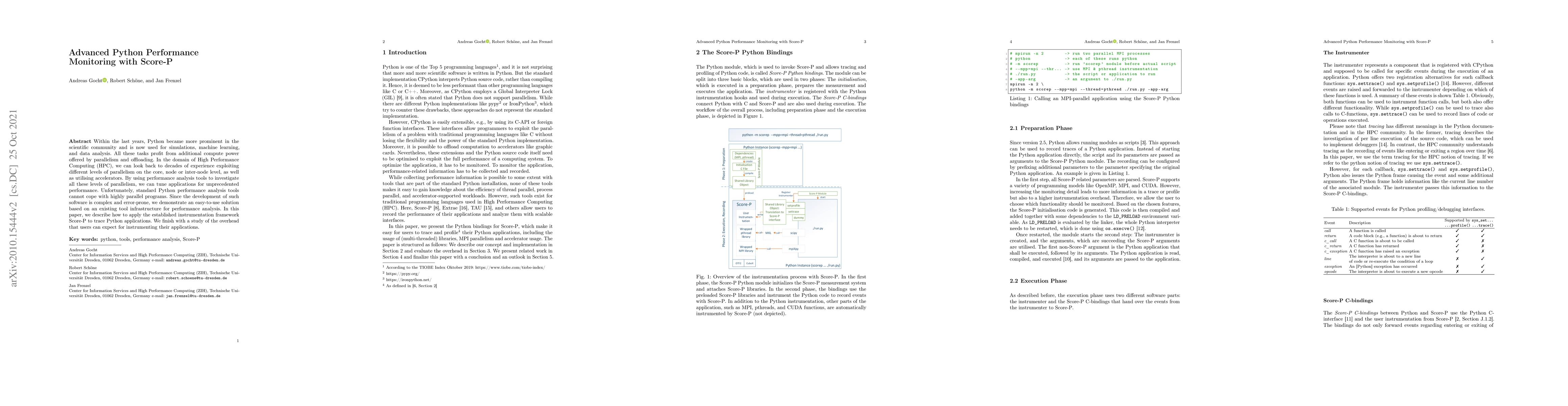 This paper presents an approach to enhance Python performance monitoring using the \scorep instrumentation framework, addressing the limitations of standard tools for highly parallel Python applications. The study concludes with an analysis of the overhead introduced by the new monitoring solution.