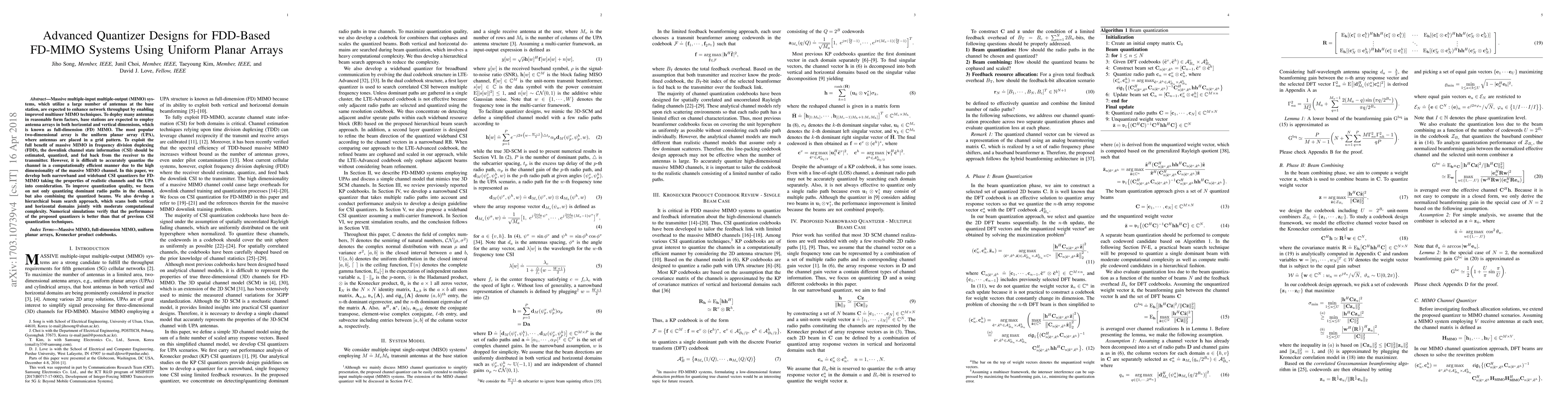 This paper develops advanced quantizers for frequency division duplexing (FDD)-based full-dimension (FD) massive MIMO systems using uniform planar arrays (UPA). It proposes both narrowband and wideband channel state information (CSI) quantizers that focus on dominant radio paths and combine quantized beams, along with a hierarchical beam search method, to achieve better performance than previous techniques.