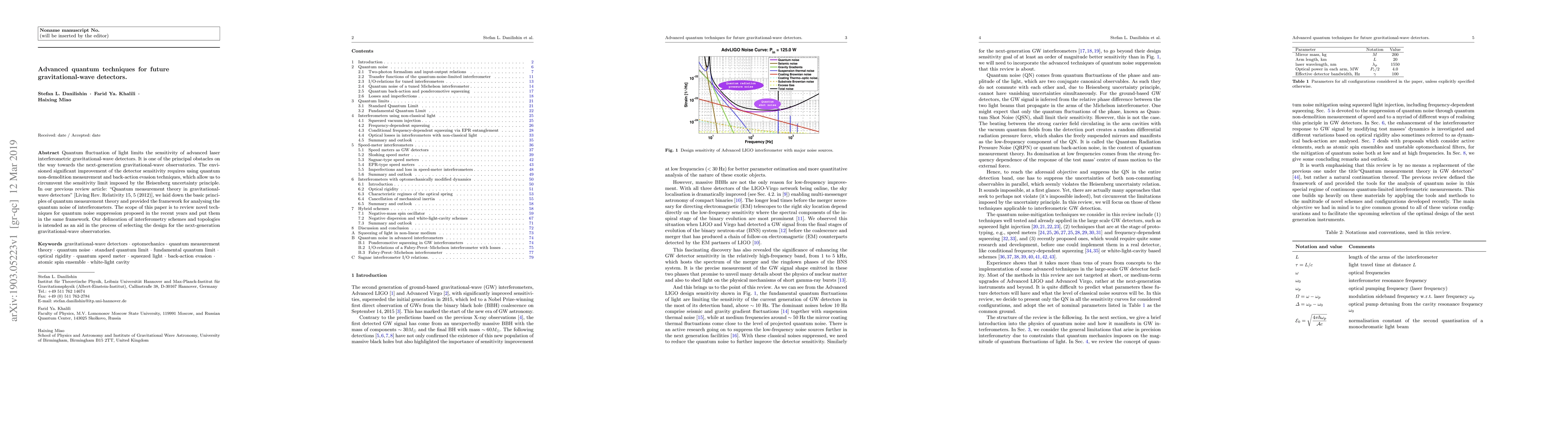 This paper reviews advanced quantum techniques for enhancing the sensitivity of future gravitational-wave detectors, focusing on quantum non-demolition measurements and back-action evasion methods to overcome quantum noise limitations imposed by the Heisenberg uncertainty principle. The paper aims to guide the design of next-generation observatories by analyzing recent innovations in quantum noise suppression.