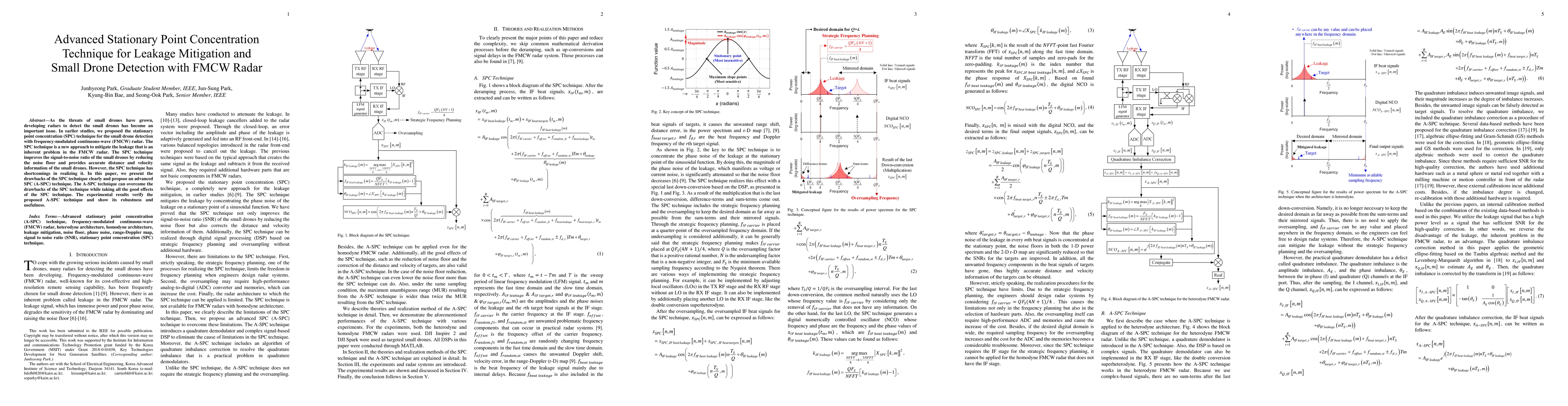 As the threats of small drones have grown, developing radars to detect the small drones has become an important issue. In earlier studies, we proposed the stationary point concentration (SPC) technique for the small drone detection with frequency-modulated continuous-wave (FMCW) radar. The SPC technique is a new approach to mitigate the leakage that is an inherent problem in the FMCW radar. The SPC technique improves the signal-to-noise ratio of the small drones by reducing the noise floor and provides accurate distance and velocity information of the small drones. However, the SPC technique has shortcomings in realizing it. In this paper, we present the drawbacks of the SPC technique clearly and propose an advanced SPC (A-SPC) technique. The A-SPC technique can overcome the drawbacks of the SPC technique while taking all the good effects of the SPC technique. The experimental results verify the proposed A-SPC technique and show its robustness and usefulness.