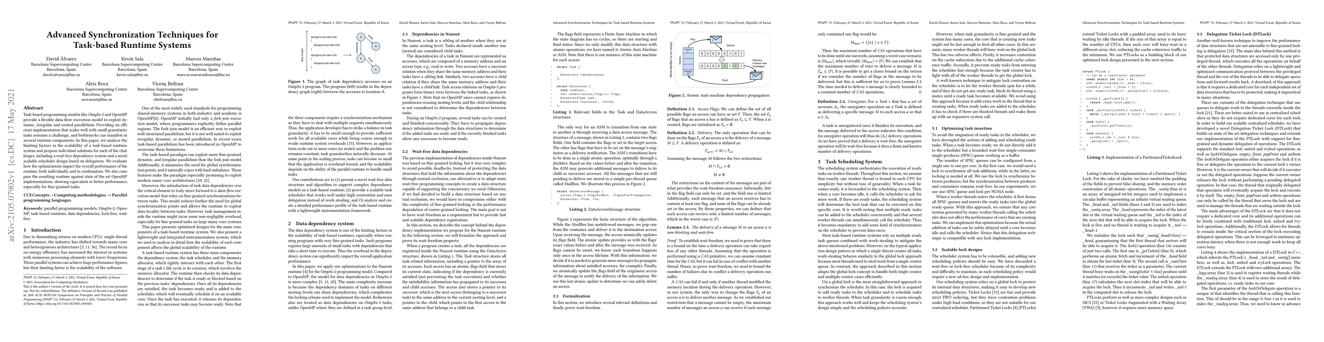 This paper investigates scalability issues in task-based runtime systems, proposing solutions like a wait-free dependency system and a scalable scheduler based on delegation. The proposed optimizations show improved performance, especially for fine-grained tasks, when compared to state-of-the-art OpenMP implementations.