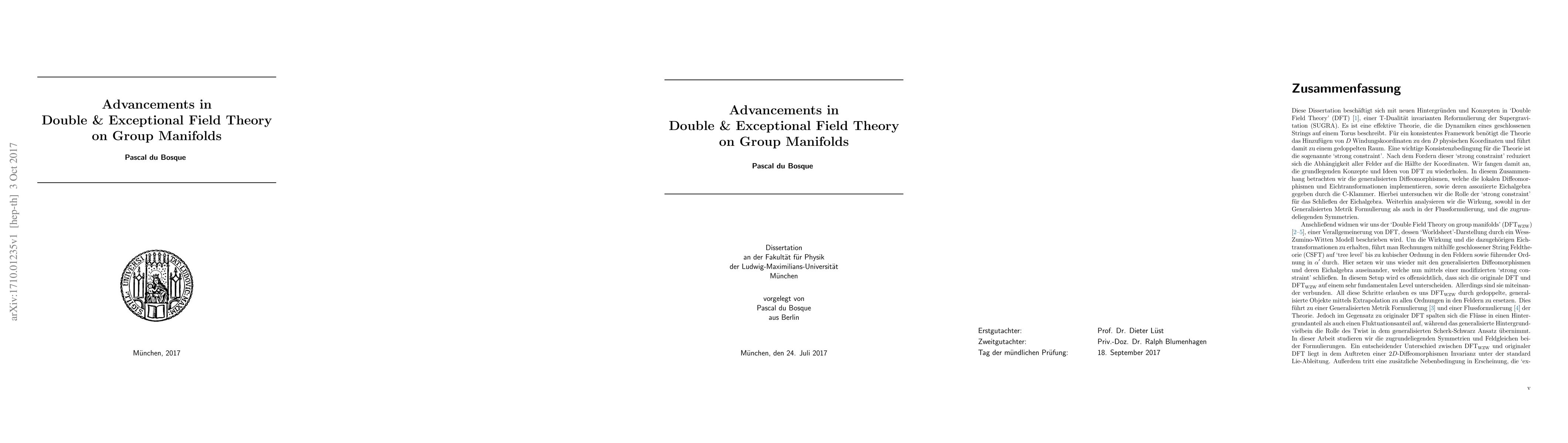 This thesis deals with new backgrounds and concepts in Double Field Theory (DFT), a T-Duality invariant reformulation of supergravity (SUGRA). We begin by reviewing the basic concepts and notions of DFT. Afterwards, we turn to Double Field Theory on group manifolds (DFT$_{\mathrm{WZW}}$). In order to obtain its action and gauge transformations, Closed String Field Theory (CSFT) computations are performed on a worldsheet, governed by a Wess-Zumino-Witten model on a group manifold. We consider generalized diffeomorphisms and their gauge algebra, which closes under a modified strong constraint. To explore the connection between this theory and DFT, we recast it in terms of doubled generalized objects and extrapolate it to all orders in fields. This yields a generalized metric formulation and a flux formulation. We study the underlying symmetries and field equations for both formulations. A novel feature in DFT$_{\mathrm{WZW}}$ is an additional $2D$-diffeomorphism invariance. An additional extended strong constraint which breaks the $2D$-diffeomorphism invariance can be imposed to reduce DFT$_{\mathrm{WZW}}$ to DFT. Furthermore, we perform a generalized Scherk-Schwarz compactification to recover the bosonic subsector of half-maximal, electrically gauged supergravities. In this context, we show how to construct twists for each embedding tensor solution explicitly by using Maurer-Cartan forms. Finally, we generalize the ideas and notions from DFT$_\mathrm{WZW}$ to geometric Exceptional Field Theory (gEFT). This allows us to present a systematic construction for generalized parallelizable spaces in dim M = 4 SL(5) Exceptional Field Theory (EFT). These spaces permit a unified treatment of consistent maximally supersymmetric truncations of ten- and eleven-dimensional supergravity in Generalized Geometry (GG) and their systematic construction has always been an open question.