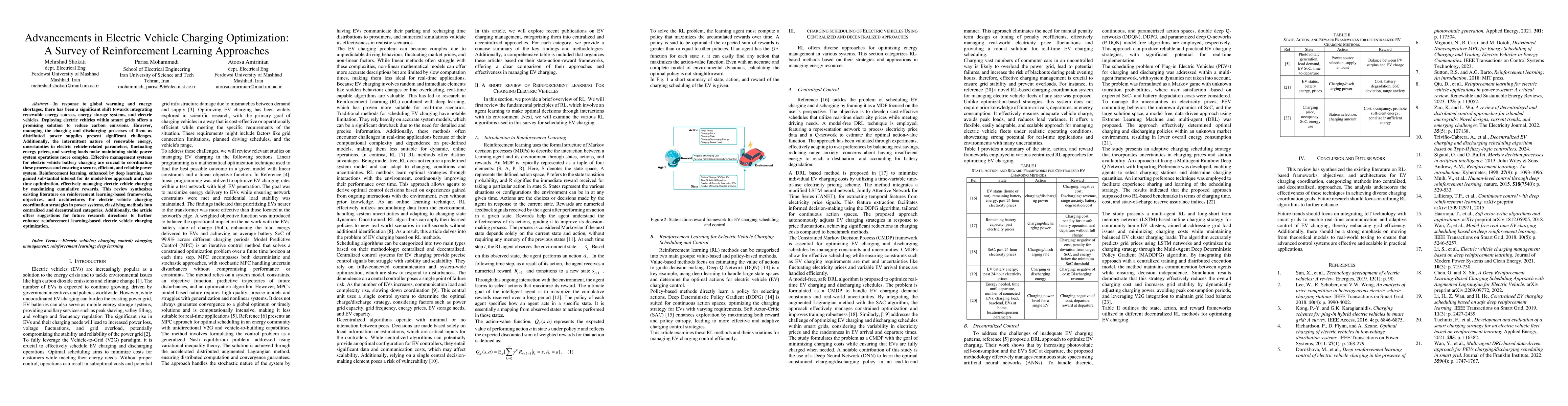 This paper surveys reinforcement learning approaches for optimizing electric vehicle charging in smart grids, emphasizing their role in managing the complexities of renewable energy integration and fluctuating energy demands. It categorizes existing methods into centralized and decentralized frameworks and suggests future research avenues to improve these strategies.