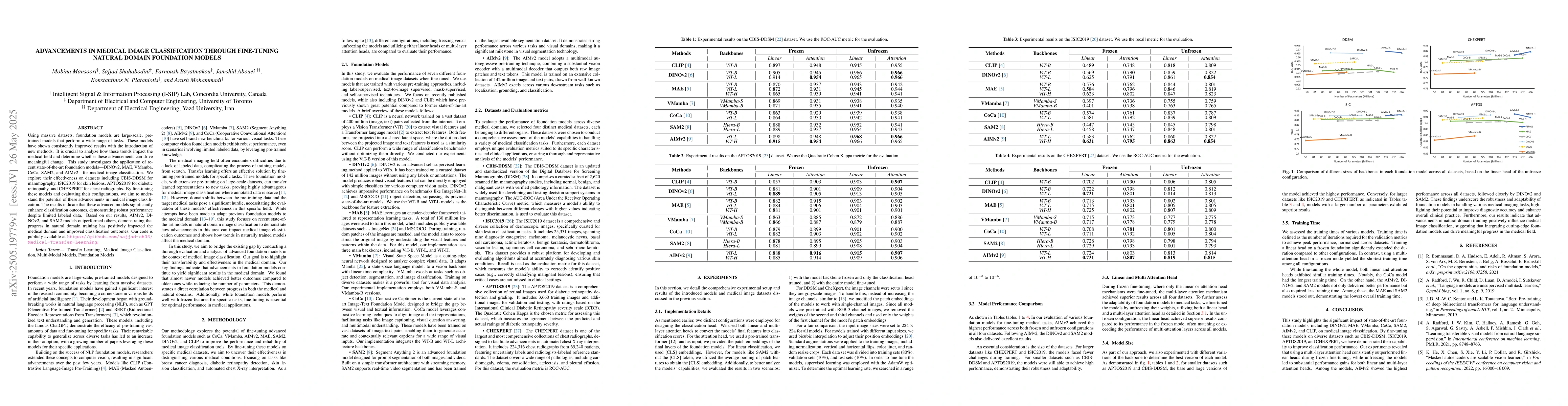 This work is novel in applying cutting-edge natural domain foundation models to medical image classification and identifying top-performing models (AIMv2, DINOv2, SAM2) for this specific domain.