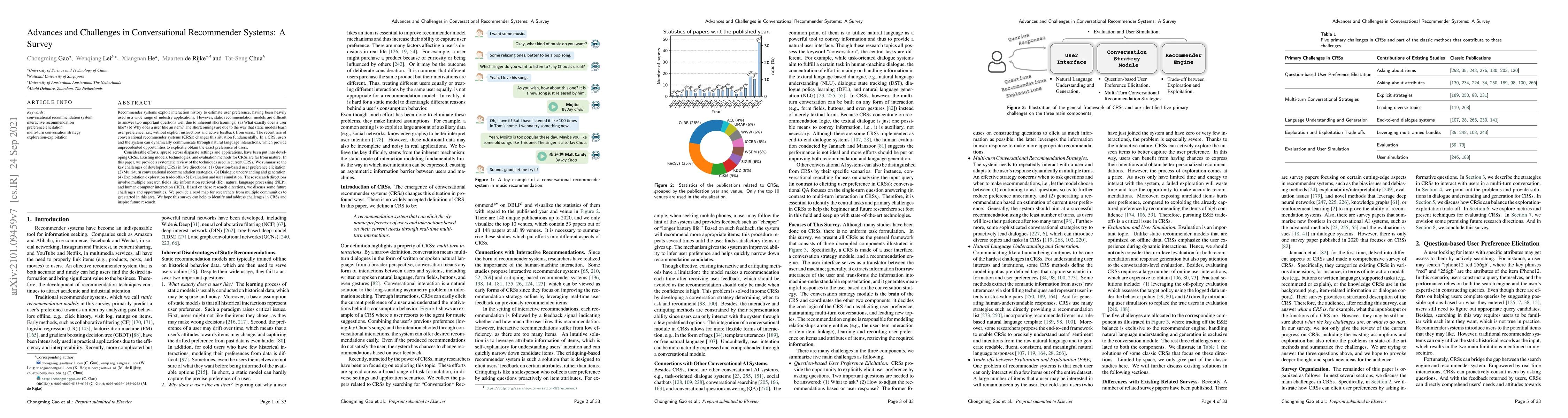 This paper surveys advancements and challenges in conversational recommender systems (CRSs), highlighting how they dynamically learn user preferences through natural language interactions. It identifies key challenges in five areas: user preference elicitation, multi-turn recommendation strategies, dialogue understanding, exploitation-exploration trade-offs, and evaluation methods, and provides a roadmap for future research across information retrieval, NLP, and HCI.