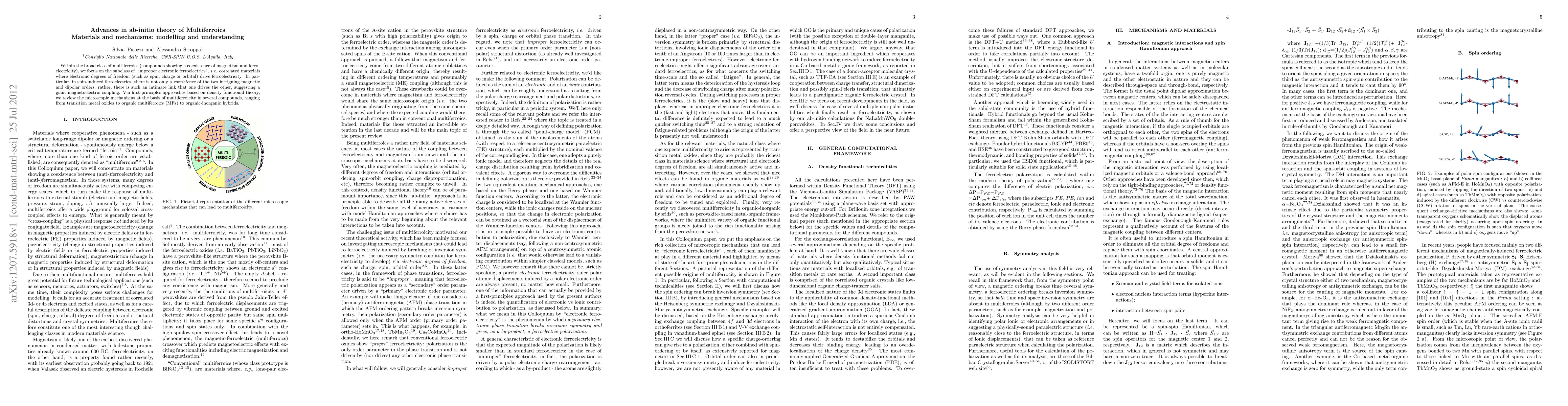 Within the broad class of multiferroics (compounds showing a coexistence of magnetism and ferroelectricity), we focus on the subclass of "improper electronic ferroelectrics", i.e. correlated materials where electronic degrees of freedom (such as spin, charge or orbital) drive ferroelectricity. In particular, in spin-induced ferroelectrics, there is not only a {\em coexistence} of the two intriguing magnetic and dipolar orders; rather, there is such an intimate link that one drives the other, suggesting a giant magnetoelectric coupling. Via first-principles approaches based on density functional theory, we review the microscopic mechanisms at the basis of multiferroicity in several compounds, ranging from transition metal oxides to organic multiferroics (MFs) to organic-inorganic hybrids (i.e. metal-organic frameworks, MOFs)