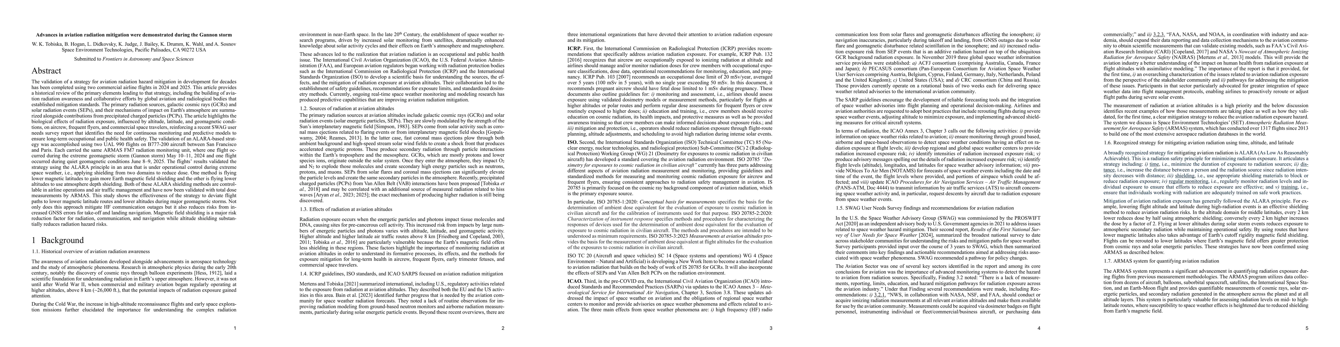 The validation of a strategy for aviation radiation hazard mitigation in development for decades has been completed using two commercial airline flights in 2024 and 2025. This article provides a historical review of the primary elements leading to that strategy, including the building of aviation radiation awareness and collaborative efforts by global aviation and radiological bodies that established mitigation standards. The validation of an ALARA strategy was accomplished using two UAL 990 flights on B777 200 aircraft between San Francisco and Paris. Each carried the same ARMAS FM7 radiation monitoring unit, where one flight occurred during the extreme geomagnetic storm (Gannon storm) May 10 to 11, 2024 and one flight occurred during quiet geomagnetic conditions June 8 to 9, 2025. The flight results validated the strategy using the ALARA principle in an area that is under operational control during extreme space weather, i.e., applying shielding from two domains to reduce dose. One method is flying lower magnetic latitudes to gain more Earth magnetic field shielding and the other is flying lower altitudes to use atmosphere depth shielding. Both of these ALARA shielding methods are controllable in airline operations and air traffic management and have now been validated with total dose measurements by ARMAS. This study shows the effectiveness of the strategy to deviate flight paths to lower magnetic latitude routes and lower altitudes during major geomagnetic storms. Not only does this approach mitigate HF communication outages but it also reduces risks from increased GNSS errors for takeoff and landing navigation. Magnetic field shielding is a major risk reduction factor for radiation, communication, and navigation while altitude shielding substantially reduces radiation hazard risks.