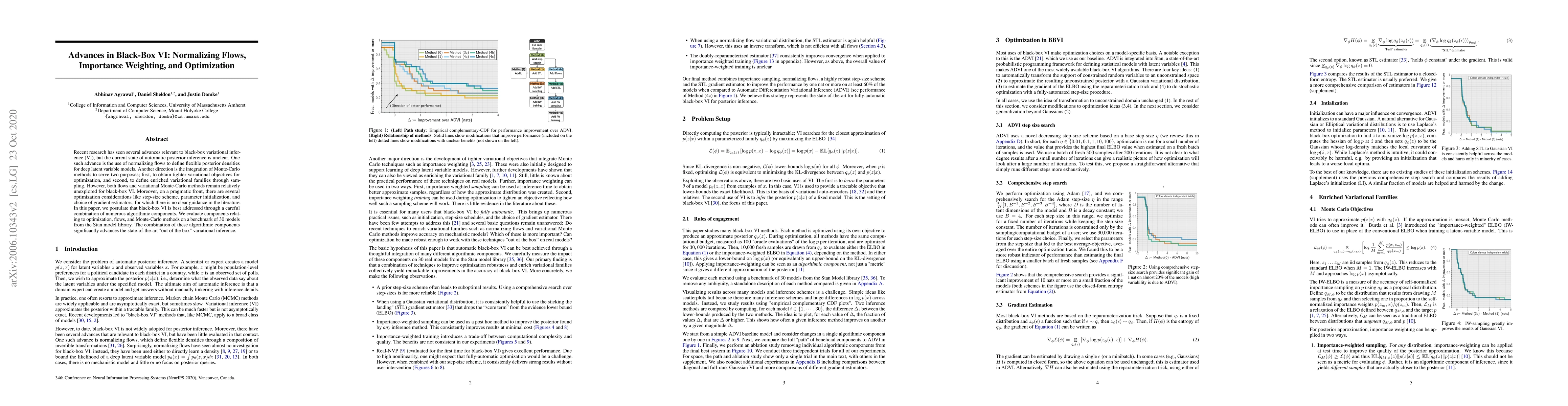This paper explores advances in black-box Variational Inference (VI), focusing on normalizing flows, Monte-Carlo methods, and optimization. The researchers propose a combination of these components to enhance VI performance, evaluating them on 30 models from the Stan library. Their findings suggest a significant improvement in 'out of the box' variational inference.