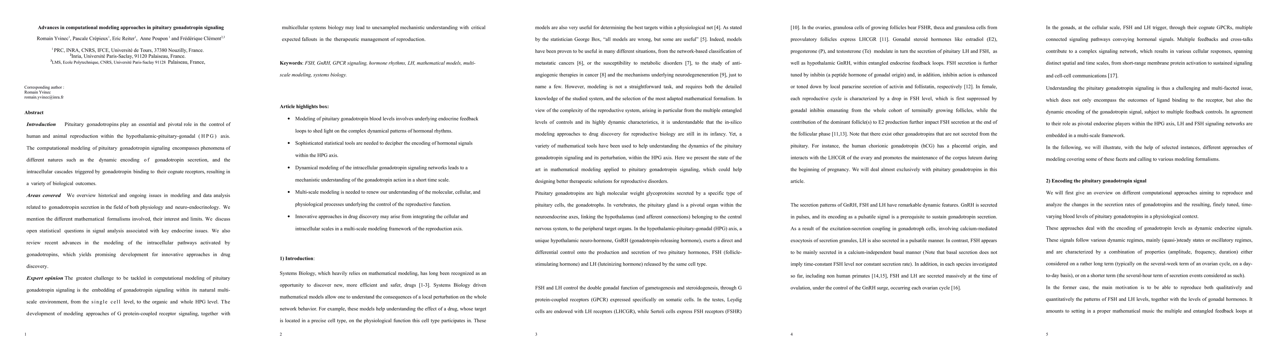 This paper reviews advances in computational modeling of pituitary gonadotropin signaling, highlighting the dynamic processes and intracellular cascades involved, and discusses the challenges of integrating these models within the multi-scale environment of the hypothalamic-pituitary-gonadal axis for better therapeutic insights.