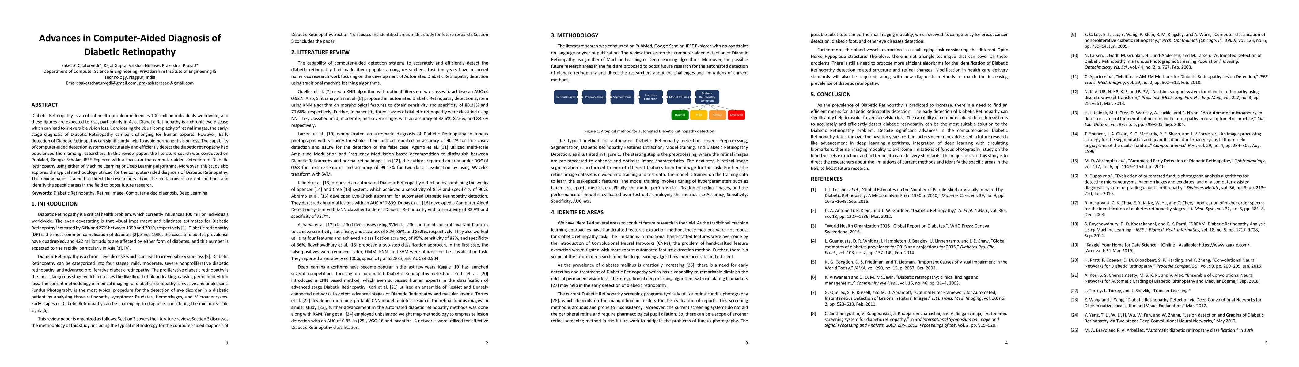 Diabetic Retinopathy is a critical health problem influences 100 million individuals worldwide, and these figures are expected to rise, particularly in Asia. Diabetic Retinopathy is a chronic eye disease which can lead to irreversible vision loss. Considering the visual complexity of retinal images, the early-stage diagnosis of Diabetic Retinopathy can be challenging for human experts. However, Early detection of Diabetic Retinopathy can significantly help to avoid permanent vision loss. The capability of computer-aided detection systems to accurately and efficiently detect the diabetic retinopathy had popularized them among researchers. In this review paper, the literature search was conducted on PubMed, Google Scholar, IEEE Explorer with a focus on the computer-aided detection of Diabetic Retinopathy using either of Machine Learning or Deep Learning algorithms. Moreover, this study also explores the typical methodology utilized for the computer-aided diagnosis of Diabetic Retinopathy. This review paper is aimed to direct the researchers about the limitations of current methods and identify the specific areas in the field to boost future research.