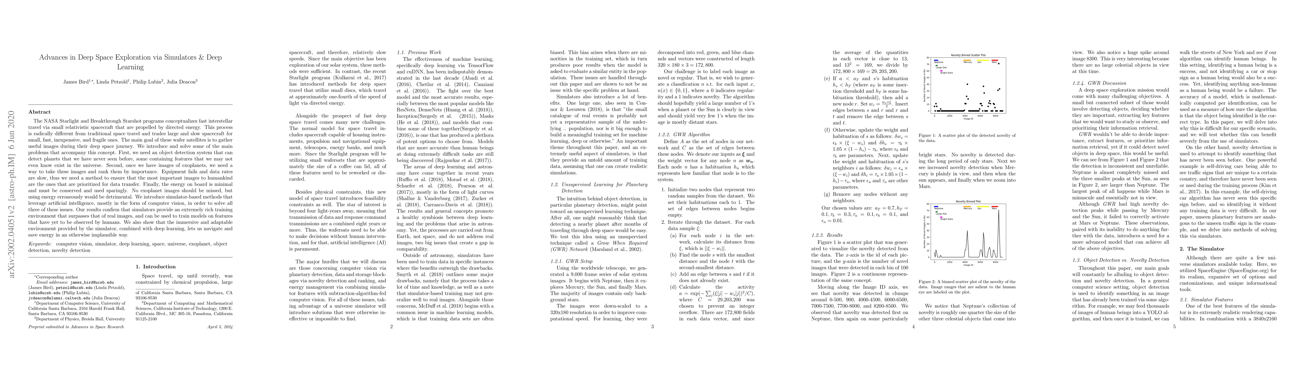 The StarLight program conceptualizes fast interstellar travel via small wafer satellites (wafersats) that are propelled by directed energy. This process is wildly different from traditional space travel and trades large and slow spacecraft for small, fast, inexpensive, and fragile ones. The main goal of these wafer satellites is to gather useful images during their deep space journey. We introduce and solve some of the main problems that accompany this concept. First, we need an object detection system that can detect planets that we have never seen before, some containing features that we may not even know exist in the universe. Second, once we have images of exoplanets, we need a way to take these images and rank them by importance. Equipment fails and data rates are slow, thus we need a method to ensure that the most important images to humankind are the ones that are prioritized for data transfer. Finally, the energy on board is minimal and must be conserved and used sparingly. No exoplanet images should be missed, but using energy erroneously would be detrimental. We introduce simulator-based methods that leverage artificial intelligence, mostly in the form of computer vision, in order to solve all three of these issues. Our results confirm that simulators provide an extremely rich training environment that surpasses that of real images, and can be used to train models on features that have yet to be observed by humans. We also show that the immersive and adaptable environment provided by the simulator, combined with deep learning, lets us navigate and save energy in an otherwise implausible way.