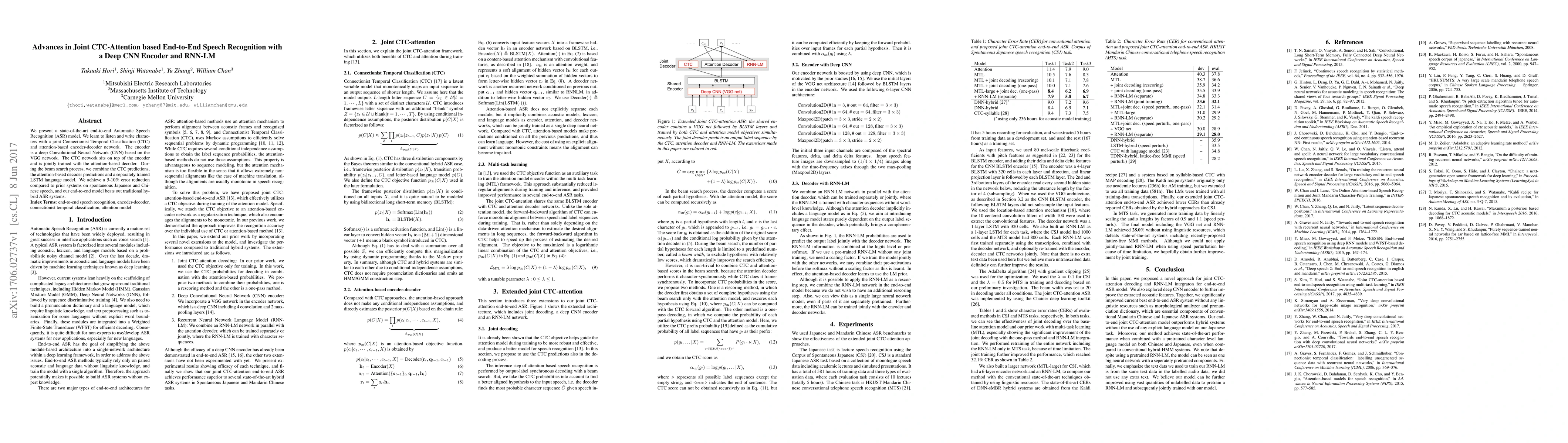 This paper introduces a cutting-edge end-to-end ASR model using a CNN encoder and CTC-attention decoder, achieving 5-10% lower error rates on Japanese and Chinese speech compared to traditional methods.