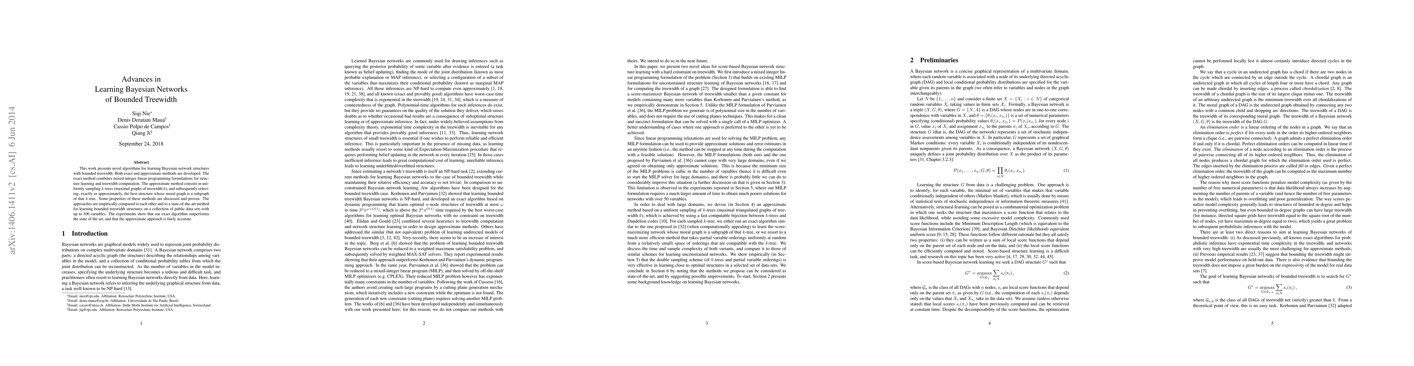 This paper introduces new algorithms for learning Bayesian network structures with bounded treewidth, combining exact and approximate methods. The exact method uses mixed-integer linear programming, while the approximate method samples $k$-trees and selects the best structure. Experiments show the exact algorithm outperforms existing methods, and the approximate method is fairly accurate.