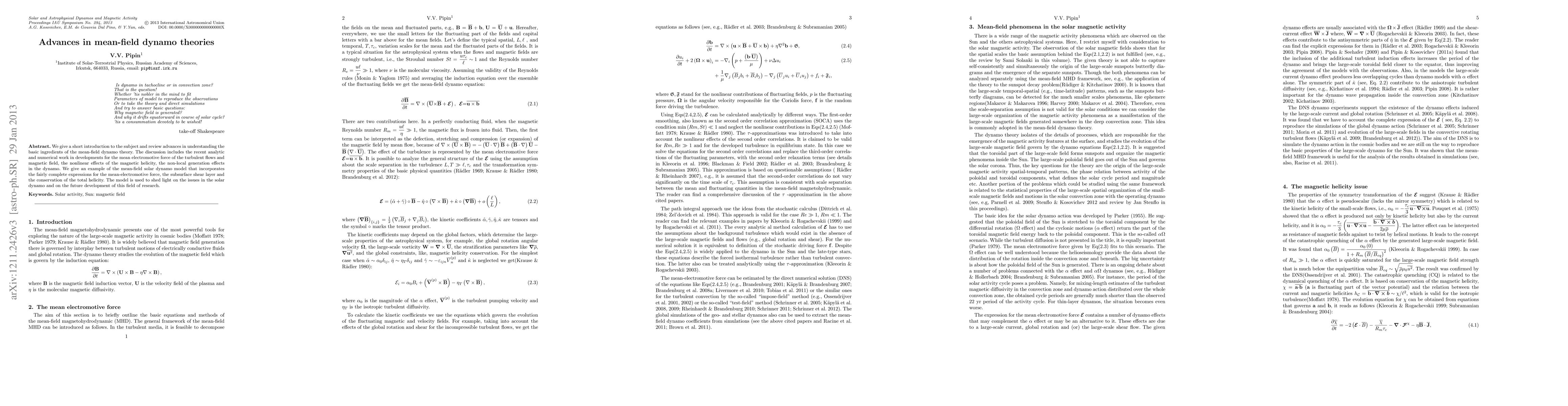 Researchers have made progress in understanding the mean-field dynamo theory, a key process in generating magnetic fields, with new insights into turbulent flows, magnetic helicity, and non-local generation effects.