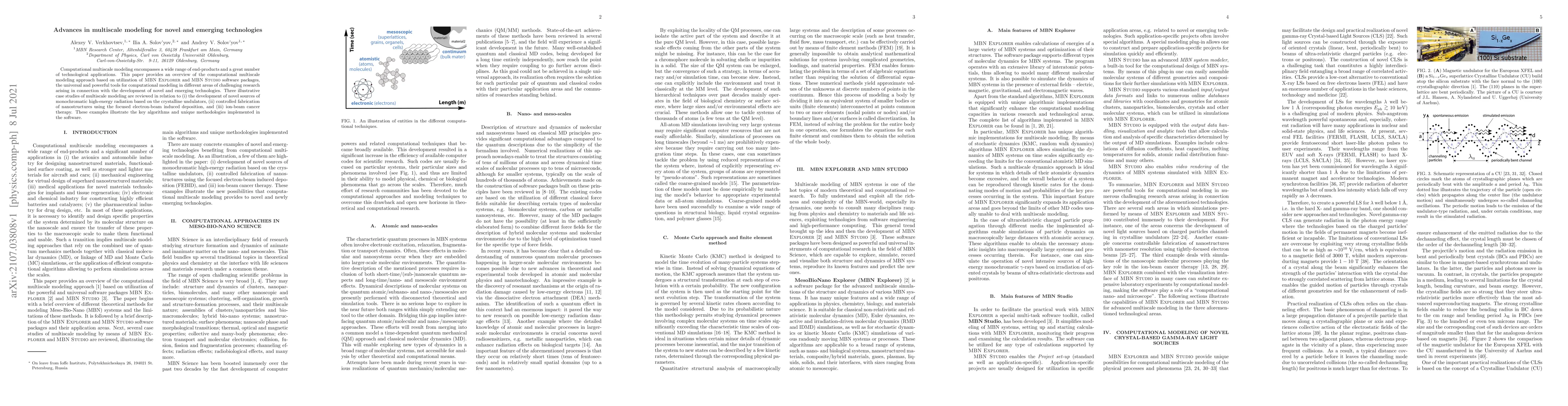 Computational multiscale modeling encompasses a wide range of end-products and a great number of technological applications. This paper provides an overview of the computational multiscale modeling approach based on the utilization of MBN Explorer and MBN Studio software packages, the universal and powerful tools for computational modeling in different areas of challenging research arising in connection with the development of novel and emerging technologies. Three illustrative case studies of multiscale modeling are reviewed in relation to (i) the development of novel sources of monochromatic high-energy radiation based on the crystalline undulators, (ii) controlled fabrication of nanostructures using the focused electron-beam induced deposition, and (iii) ion-beam cancer therapy. These examples illustrate the key algorithms and unique methodologies implemented in the software.