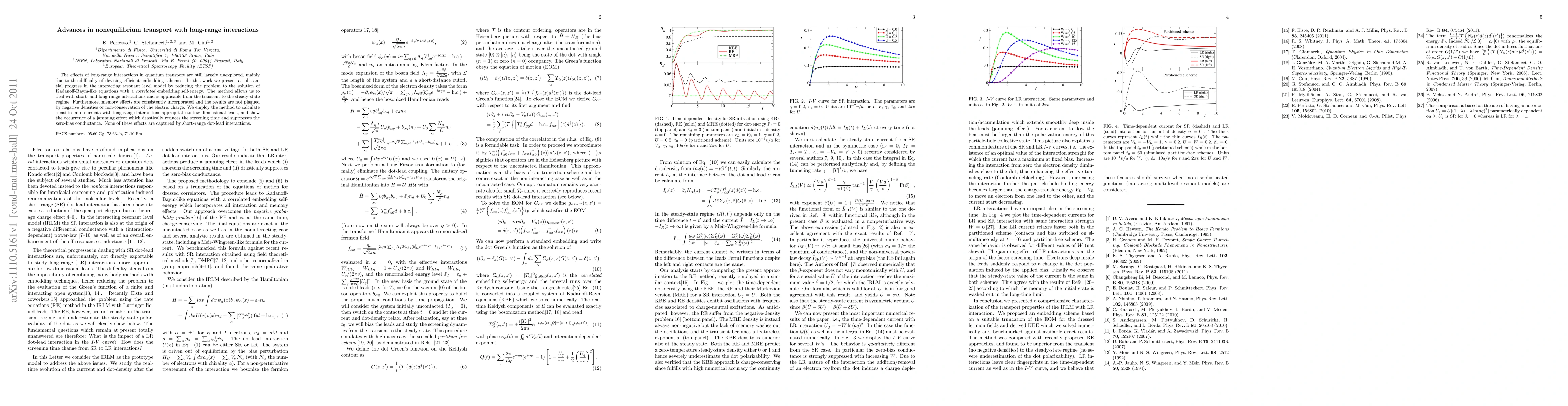 This paper introduces a novel method for studying quantum transport with long-range interactions, reducing the problem to Kadanoff-Baym-like equations with a correlated embedding self-energy. The method reveals a jamming effect that reduces screening time and suppresses zero-bias conductance, effects not observed in short-range interactions.