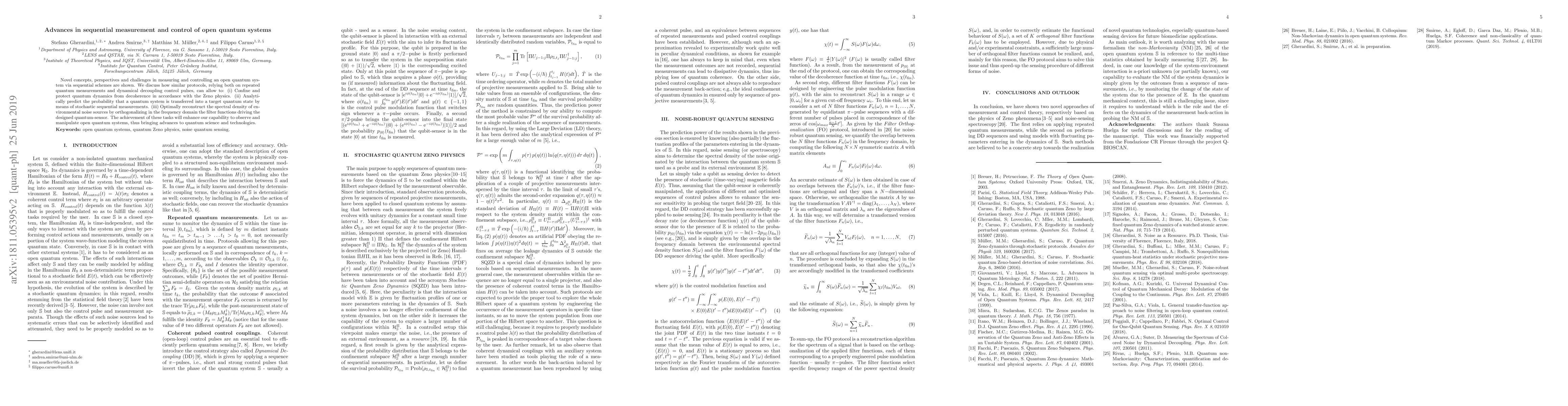 This paper explores new methods for measuring and controlling open quantum systems using sequential measurement and control schemes. It details how these schemes can limit decoherence, predict the probability of a system reaching a target state, and optimize noise source reconstruction, thereby advancing quantum science and technology.