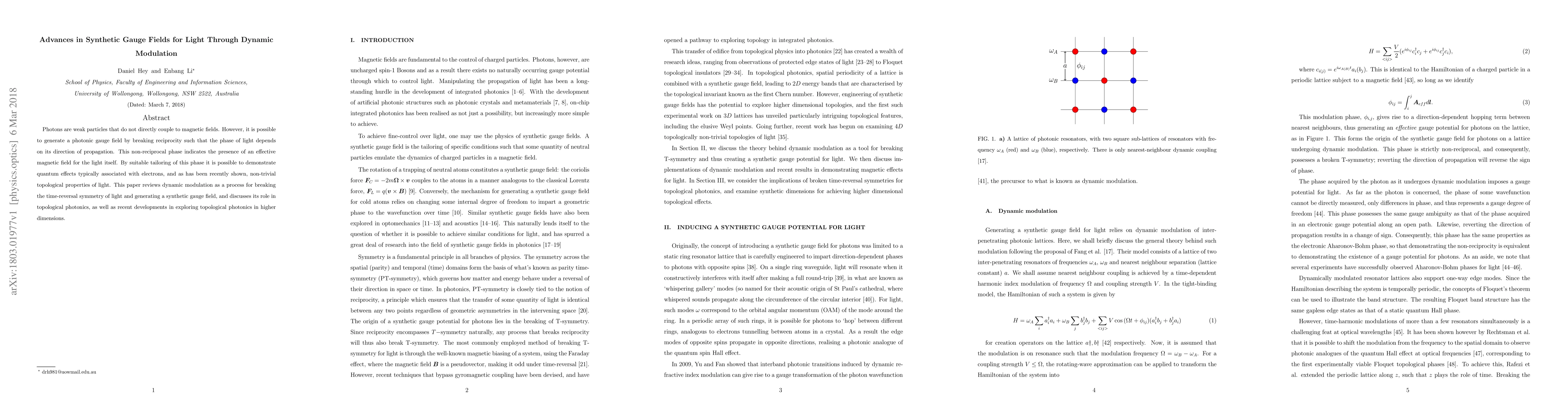 Researchers explore a way to create artificial magnetic fields using light, enabling quantum effects and topological properties similar to those in electrons. Dynamic modulation is used to break the symmetry of light, generating a synthetic gauge field.