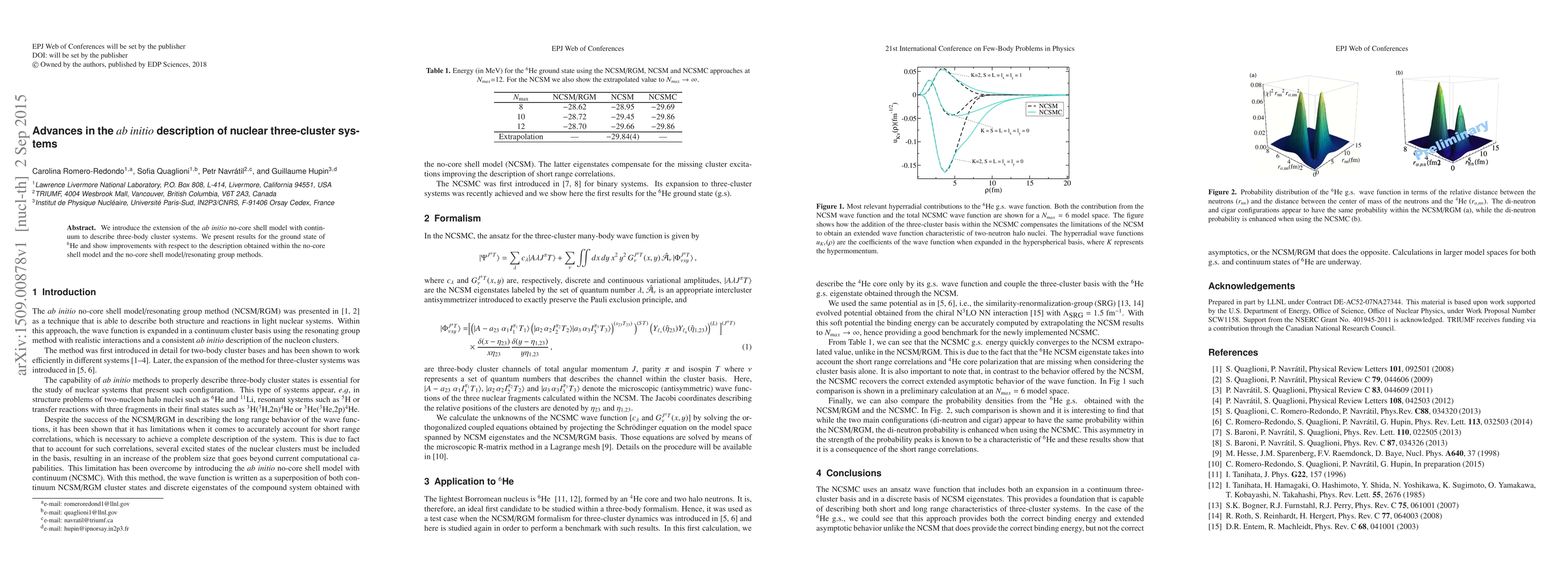 This paper extends the ab initio no-core shell model with continuum to accurately describe three-cluster nuclear systems, demonstrating significant improvements in the ground state description of 6He compared to previous models.
