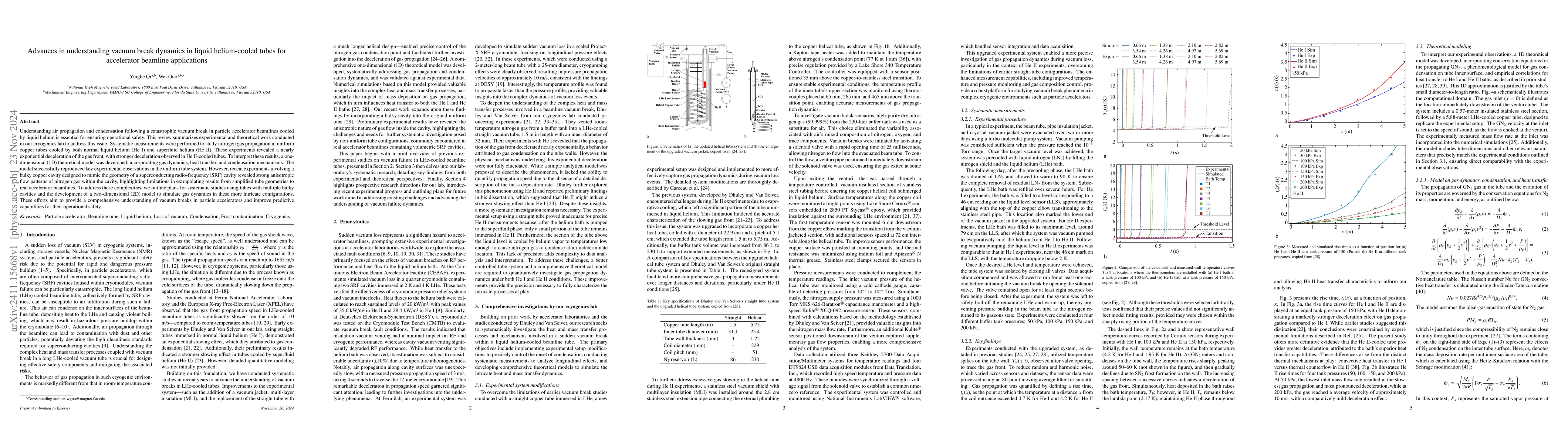 This research investigates nitrogen gas dynamics following vacuum breaks in helium-cooled accelerator beamlines, revealing significant differences in gas propagation between normal and superfluid helium-cooled copper tubes. A 2D model development and more complex tube geometries are proposed to address limitations in current understanding.