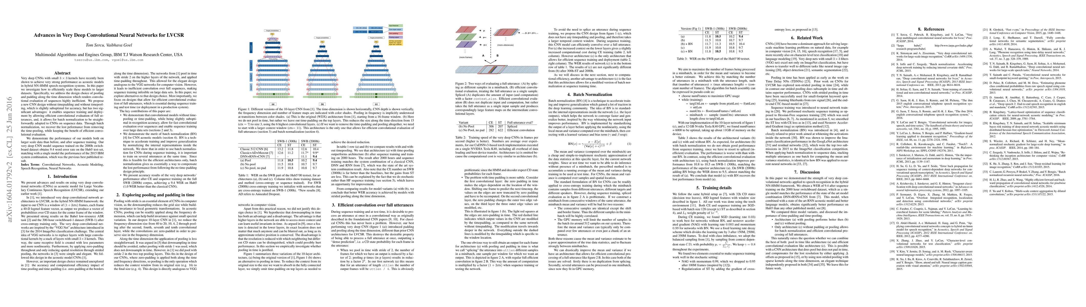 This paper proposes a new design for very deep convolutional neural networks (CNNs) that efficiently scales to larger datasets for large vocabulary continuous speech recognition (LVCSR) by eliminating time-padding and time-pooling. The new design enables sequence training and efficient convolutional evaluation, and integrates batch normalization to recover accuracy lost from removing time-pooling, achieving state-of-the-art performance on the 2000h Switchboard dataset.