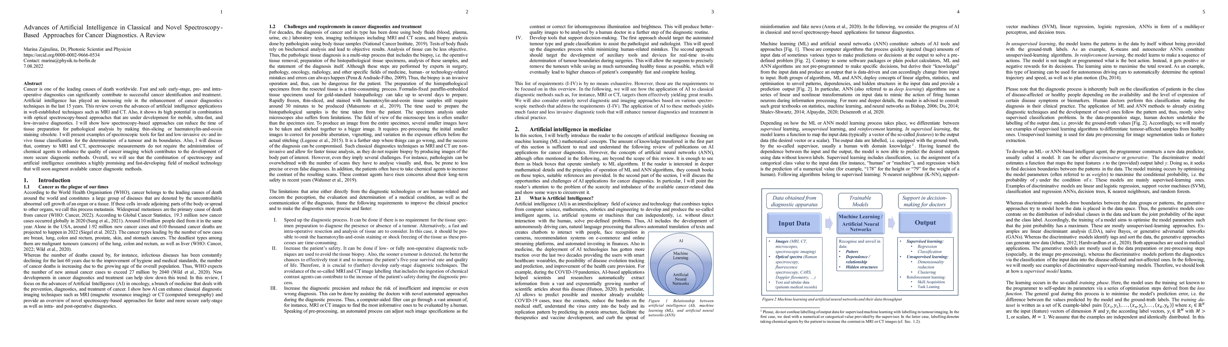 This review explores the advancements of artificial intelligence in enhancing classical and novel spectroscopy-based approaches for cancer diagnostics, highlighting its potential to provide mobile, ultra-fast, and low-invasive diagnostic methods that can replace traditional tissue preparation techniques. The integration of AI and spectroscopy promises to develop more secure and efficient cancer diagnostic methods.