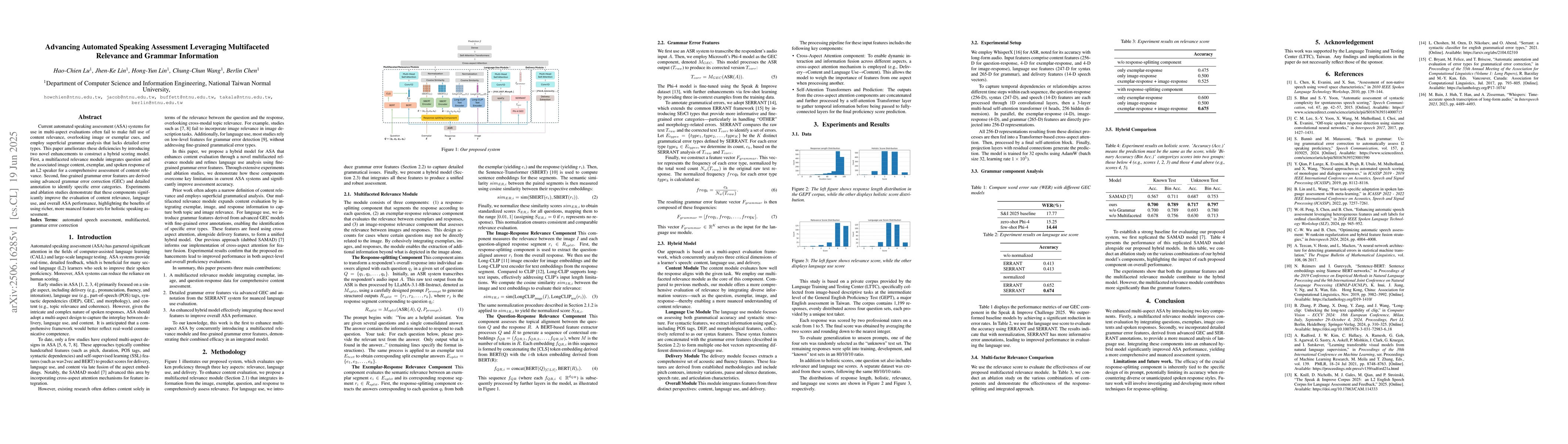 The proposed system combines a multiaspect automatic speech assessment (ASA) model with a detailed grammar error feature derived from advanced GEC and SER-RANT annotations.