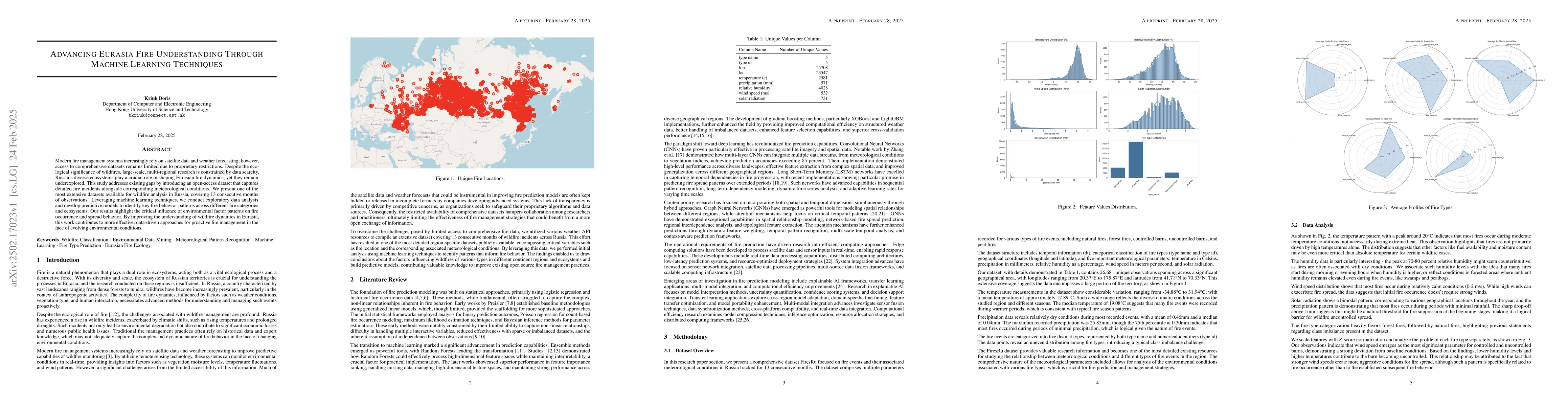 The study introduces an open-access dataset capturing detailed fire incidents alongside corresponding meteorological conditions for 13 months in Russia. Machine learning techniques are applied for exploratory data analysis and predictive modeling.