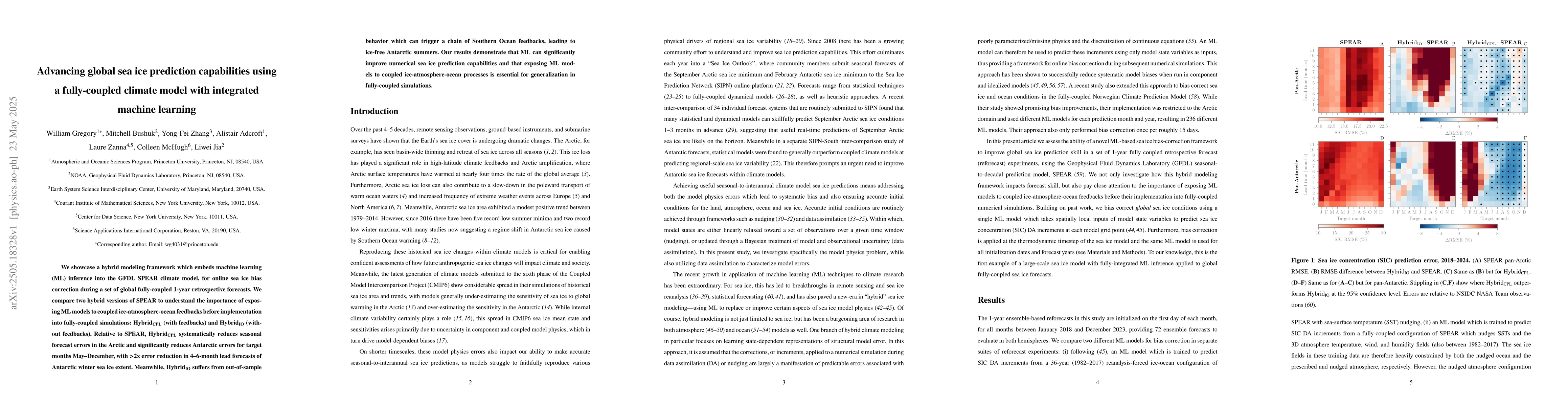 The development and implementation of a hybrid climate modeling framework that combines a fully-coupled climate model (SPEAR) with machine learning for real-time bias correction in sea ice predictions.