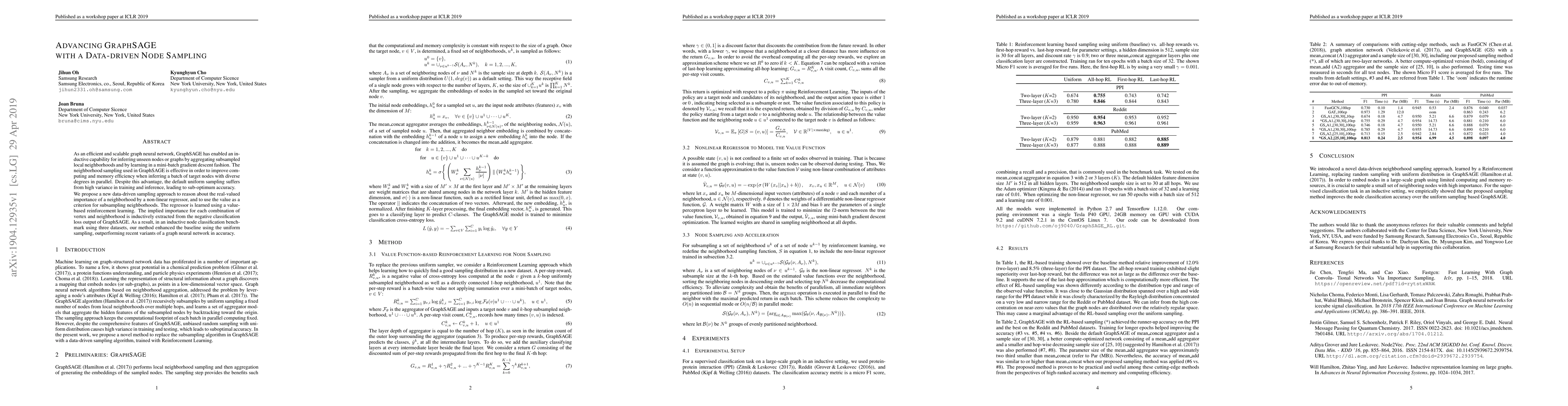 GraphSAGE's neighborhood sampling method is improved with a data-driven approach that uses a non-linear regressor to determine neighborhood importance, leading to increased accuracy in node classification tasks.