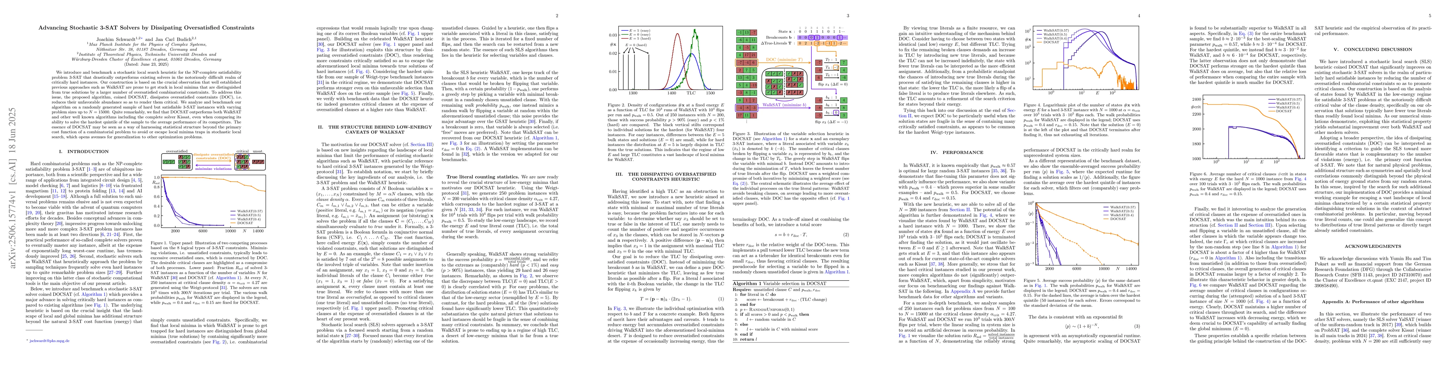 We introduce and benchmark a stochastic local search heuristic for the NP-complete satisfiability problem 3-SAT that drastically outperforms existing solvers in the notoriously difficult realm of critically hard instances. Our construction is based on the crucial observation that well established previous approaches such as WalkSAT are prone to get stuck in local minima that are distinguished from true solutions by a larger number of oversatisfied combinatorial constraints. To address this issue, the proposed algorithm, coined DOCSAT, dissipates oversatisfied constraints (DOC), i.e. reduces their unfavorable abundance so as to render them critical. We analyze and benchmark our algorithm on a randomly generated sample of hard but satisfiable 3-SAT instances with varying problem sizes up to N=15000. Quite remarkably, we find that DOCSAT outperforms both WalkSAT and other well known algorithms including the complete solver Kissat, even when comparing its ability to solve the hardest quintile of the sample to the average performance of its competitors. The essence of DOCSAT may be seen as a way of harnessing statistical structure beyond the primary cost function of a combinatorial problem to avoid or escape local minima traps in stochastic local search, which opens avenues for generalization to other optimization problems.