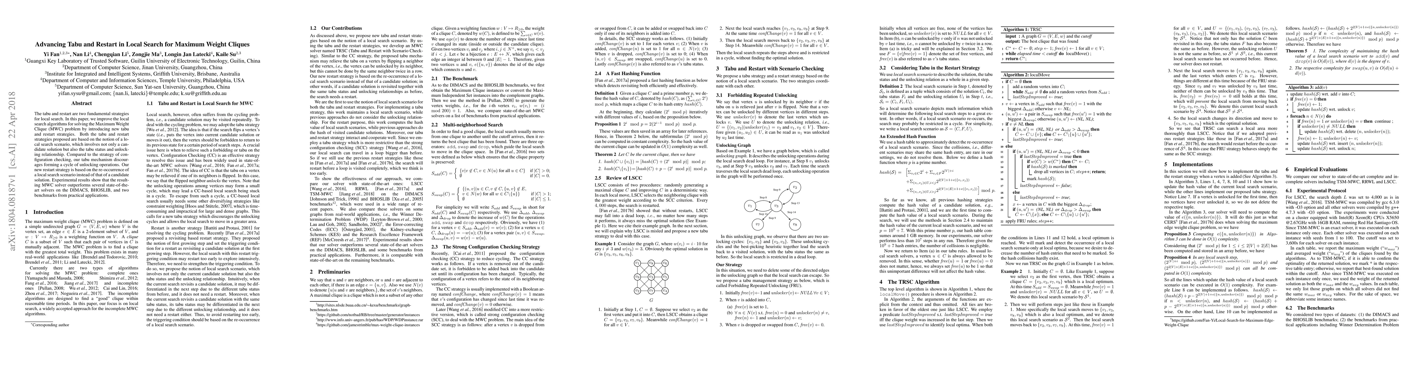 Researchers improved tabu and restart strategies for local search to solve the Maximum Weight Clique problem, achieving better performance than existing solvers in experiments on various benchmarks.