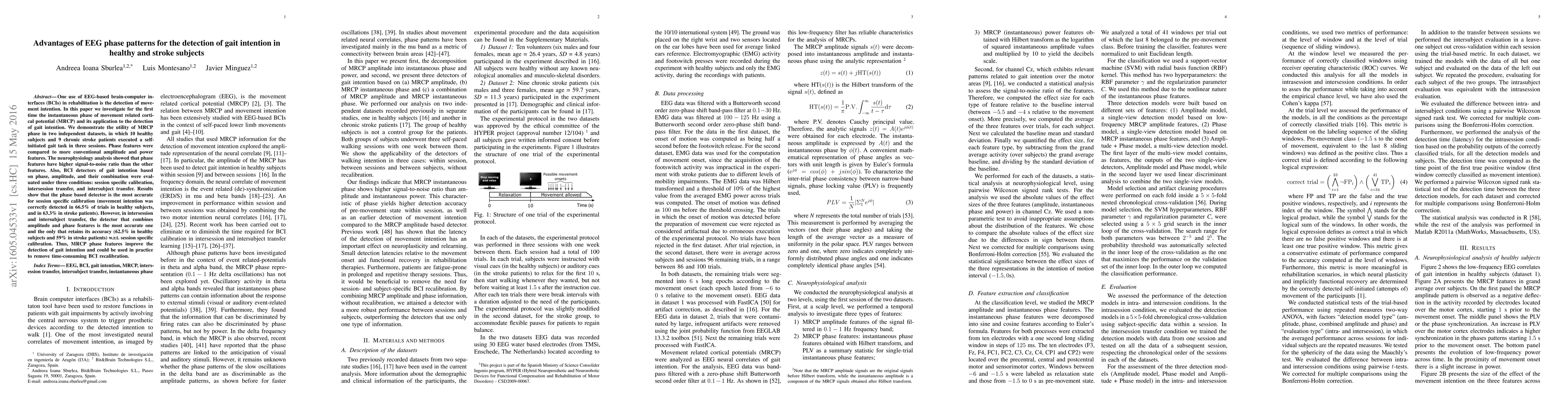This paper investigates EEG-based brain-computer interfaces (BCIs) for detecting gait intention using instantaneous phase of movement-related cortical potential (MRCP). Phase features show higher signal-to-noise ratios and improved accuracy for session-specific calibration, while a combined amplitude-phase detector retains accuracy across sessions and subjects.