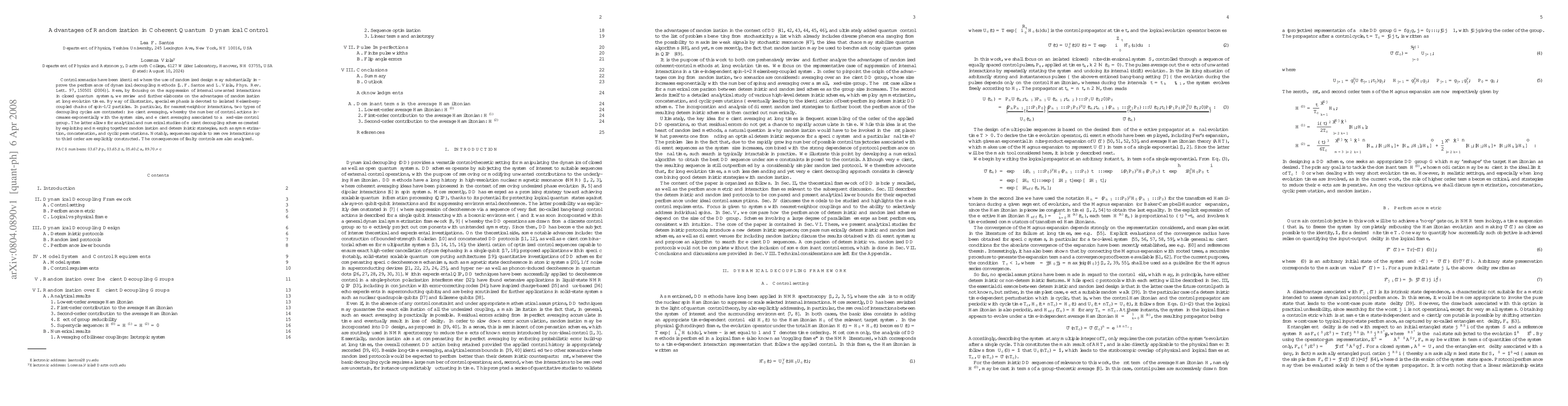 This paper reviews the benefits of randomization in coherent quantum dynamical control, particularly in suppressing unwanted interactions in closed quantum systems. It contrasts inefficient and efficient decoupling cycles, highlighting the advantages of fixed-size control groups that merge randomization with deterministic strategies for effective decoupling.