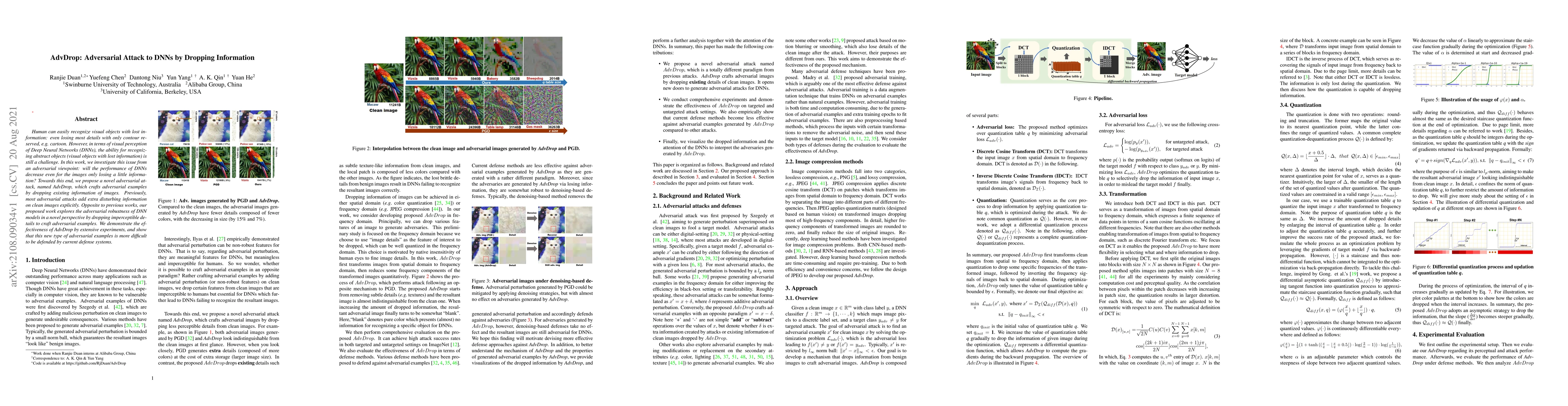 Human can easily recognize visual objects with lost information: even losing most details with only contour reserved, e.g. cartoon. However, in terms of visual perception of Deep Neural Networks (DNNs), the ability for recognizing abstract objects (visual objects with lost information) is still a challenge. In this work, we investigate this issue from an adversarial viewpoint: will the performance of DNNs decrease even for the images only losing a little information? Towards this end, we propose a novel adversarial attack, named \textit{AdvDrop}, which crafts adversarial examples by dropping existing information of images. Previously, most adversarial attacks add extra disturbing information on clean images explicitly. Opposite to previous works, our proposed work explores the adversarial robustness of DNN models in a novel perspective by dropping imperceptible details to craft adversarial examples. We demonstrate the effectiveness of \textit{AdvDrop} by extensive experiments, and show that this new type of adversarial examples is more difficult to be defended by current defense systems.