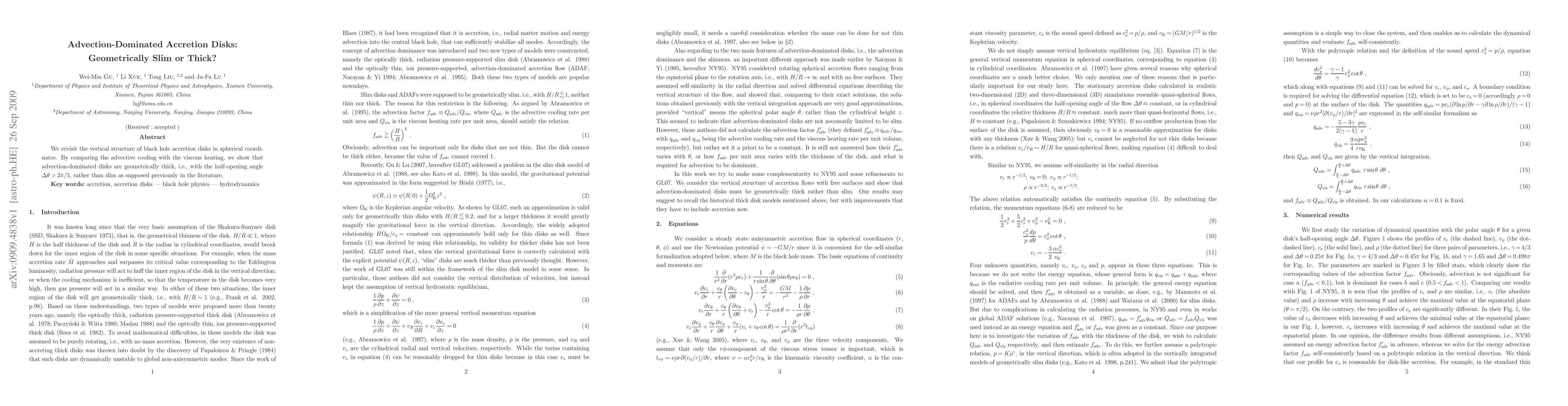 We revisit the vertical structure of black hole accretion disks in spherical coordinates. By comparing the advective cooling with the viscous heating, we show that advection-dominated disks are geometrically thick, i.e., with the half-opening angle > 2\pi/5, rather than slim as supposed previously in the literature.