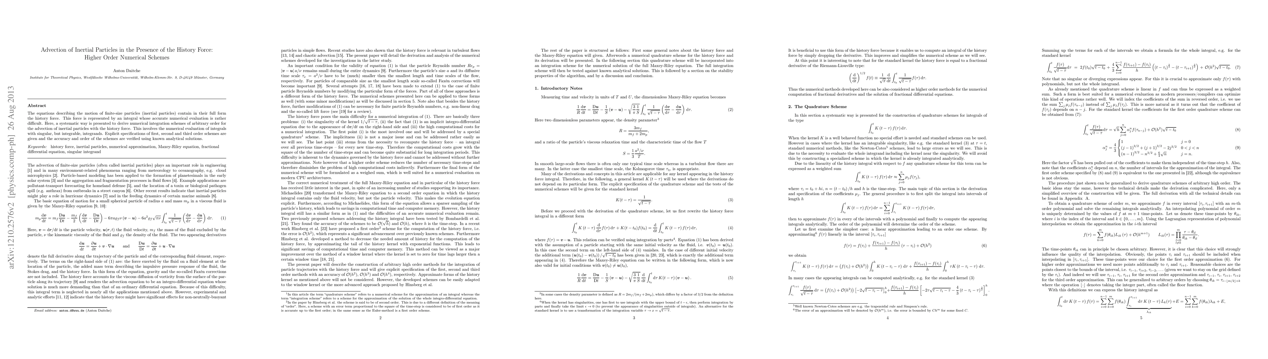 Researchers developed a systematic method to derive high-order numerical schemes for simulating inertial particles with a history force, improving accuracy and order of existing methods.
