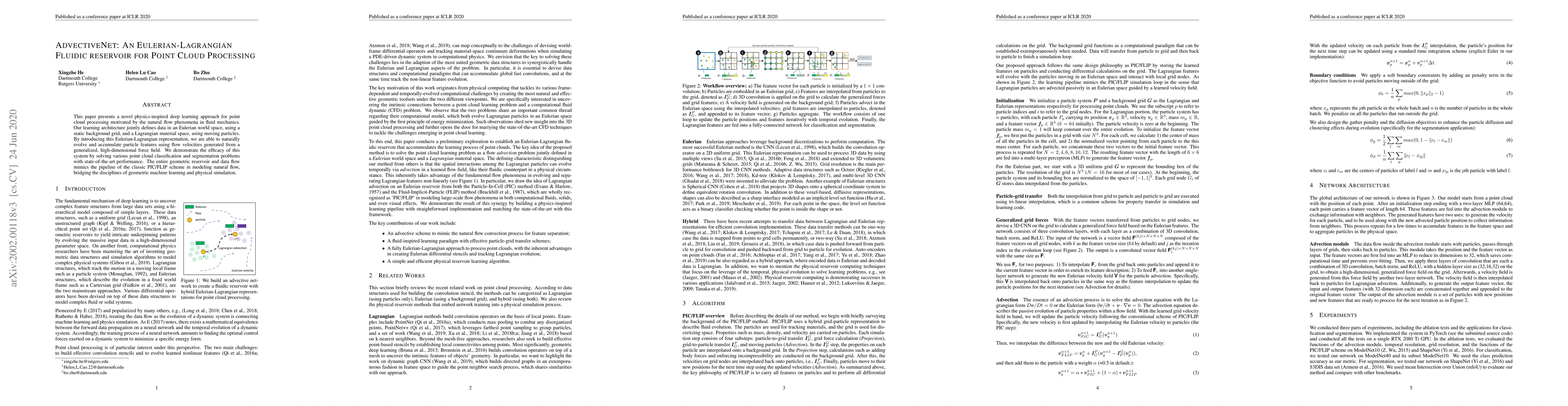 This paper presents a novel physics-inspired deep learning approach for point cloud processing motivated by the natural flow phenomena in fluid mechanics. Our learning architecture jointly defines data in an Eulerian world space, using a static background grid, and a Lagrangian material space, using moving particles. By introducing this Eulerian-Lagrangian representation, we are able to naturally evolve and accumulate particle features using flow velocities generated from a generalized, high-dimensional force field. We demonstrate the efficacy of this system by solving various point cloud classification and segmentation problems with state-of-the-art performance. The entire geometric reservoir and data flow mimics the pipeline of the classic PIC/FLIP scheme in modeling natural flow, bridging the disciplines of geometric machine learning and physical simulation.