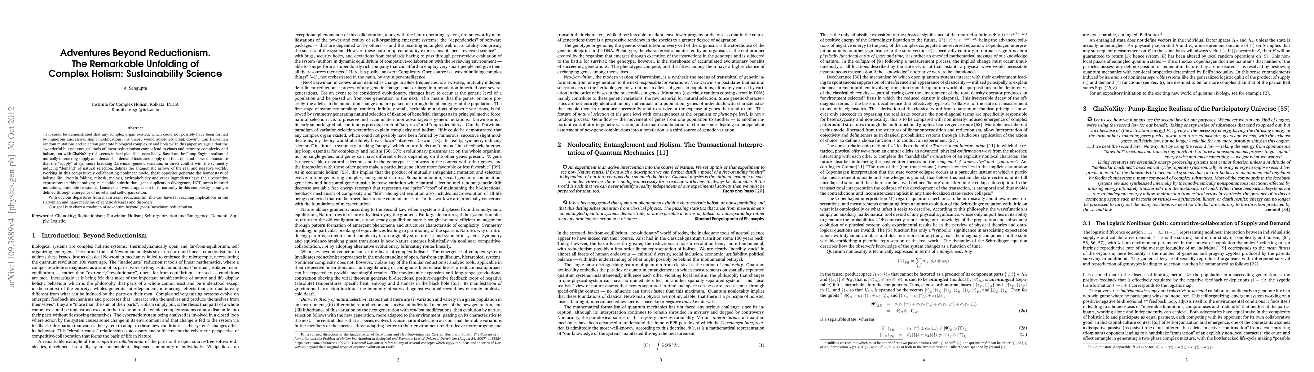 "If it could be demonstrated that any complex organ existed, which could not possibly have been formed by numerous successive, slight modifications, my theory would absolutely break down". Can Darwinian random mutations and selection generate biological complexity and holism? In this paper we argue that the "wonderful but not enough" tools of linear reductionism cannot lead to chaos and hence to complexity and holism, but with ChaNoXity this seems indeed plausible, even likely. Based on the Pump-Engine realism of mutually interacting supply and demand --- demand institutes supply that fuels demand --- we demonstrate that the "supply" of symmetry breaking Darwinian genetic variation, in direct conflict with the symmetry inducing "demand" of natural selection, defines the antagonistic arrows of the real and negative worlds. Working in this competitively collaborating nonlinear mode, these opposites generate the homeostasy of holistic life. Protein folding, mitosis, meiosis, hydrophobicity and other ingredients have their respective expressions in this paradigm; nucleotide substitution, gene duplication-divergence, HGT, stress-induced mutations, antibiotic resistance, Lamarckism would appear to fit in naturally in this complexity paradigm defined through emergence of novelty and self-organization. With obvious departures from current reductionism, this can have far reaching implications in the Darwinian and nano medicine of genetic diseases and disorders. Our goal is to chart a roadmap of adventure beyond (neo)-Darwinian reductionism.
