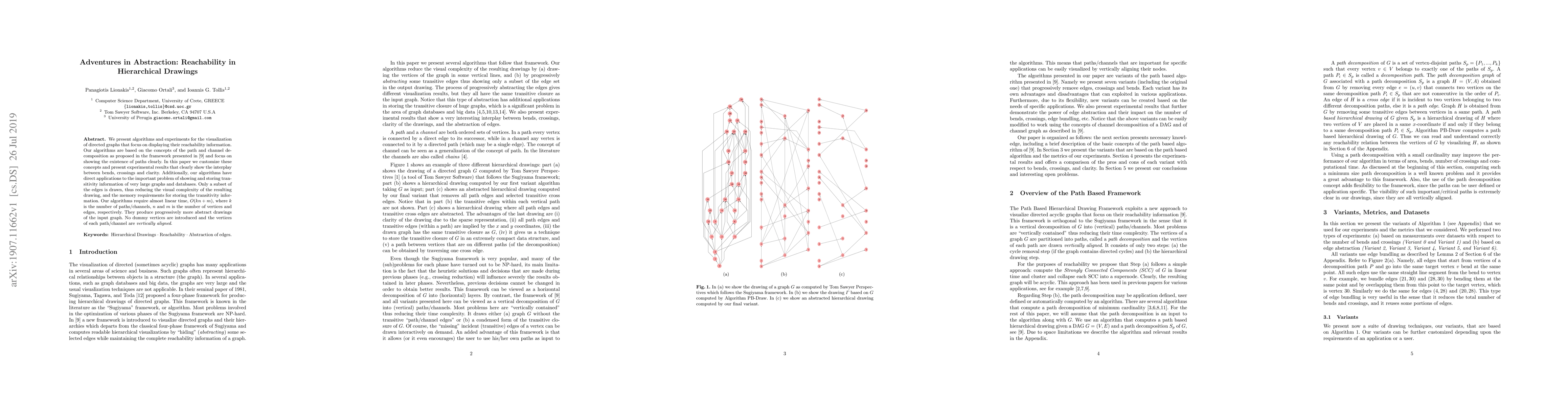 We present algorithms and experiments for the visualization of directed graphs that focus on displaying their reachability information. Our algorithms are based on the concepts of the path and channel decomposition as proposed in the framework presented in GD 2018 (pp. 579-592) and focus on showing the existence of paths clearly. In this paper we customize these concepts and present experimental results that clearly show the interplay between bends, crossings and clarity. Additionally, our algorithms have direct applications to the important problem of showing and storing transitivity information of very large graphs and databases. Only a subset of the edges is drawn, thus reducing the visual complexity of the resulting drawing, and the memory requirements for storing the transitivity information. Our algorithms require almost linear time, $O(kn+m)$, where $k$ is the number of paths/channels, $n$ and $m$ is the number of vertices and edges, respectively. They produce progressively more abstract drawings of the input graph. No dummy vertices are introduced and the vertices of each path/channel are vertically aligned.