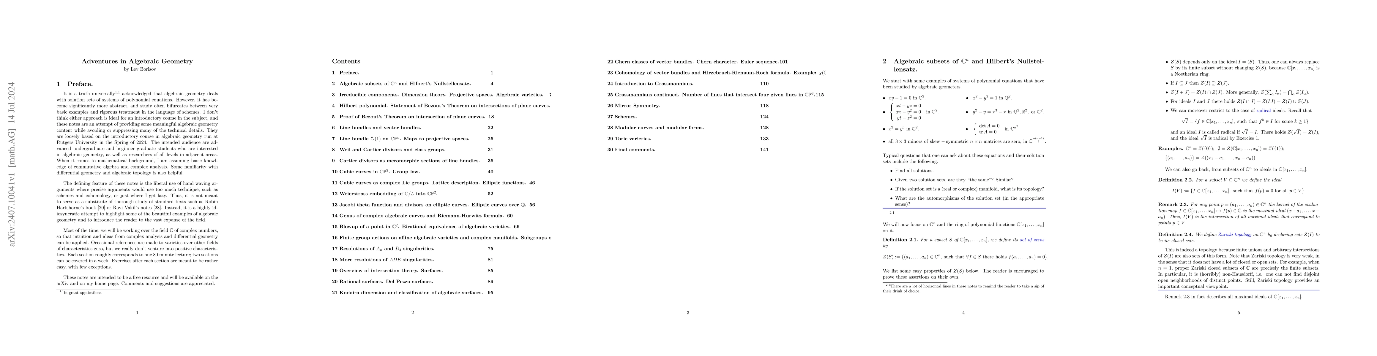 Summary: These notes offer an accessible introduction to algebraic geometry, highlighting advanced topics from a course taught at Rutgers University in 2024, with a focus on conceptual understanding over technical depth.