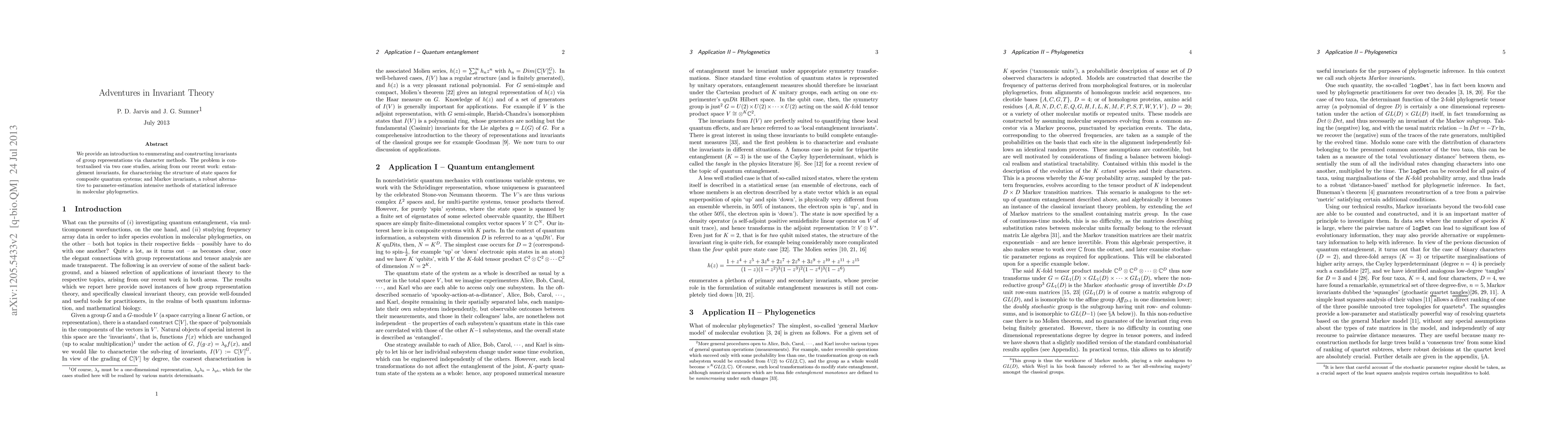 We provide an introduction to enumerating and constructing invariants of group representations via character methods. The problem is contextualised via two case studies arising from our recent work: entanglement measures, for characterising the structure of state spaces for composite quantum systems; and Markov invariants, a robust alternative to parameter-estimation intensive methods of statistical inference in molecular phylogenetics.