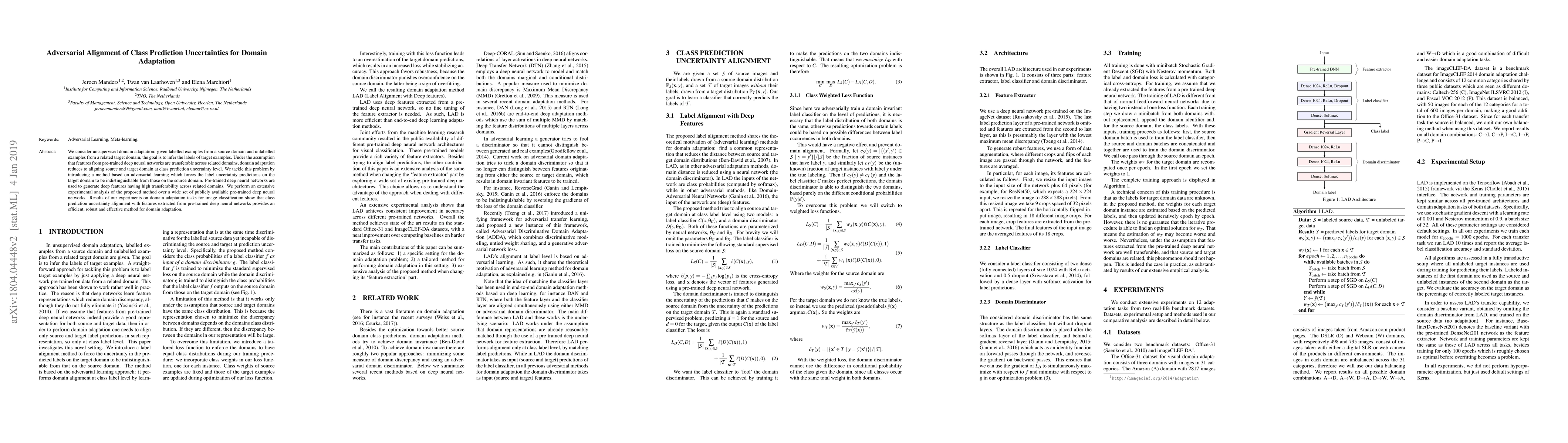 This paper proposes an adversarial learning method for unsupervised domain adaptation, aiming to align class prediction uncertainties between source and target domains. The method leverages pre-trained deep neural networks to generate transferable features, achieving effective domain adaptation through uncertainty alignment.