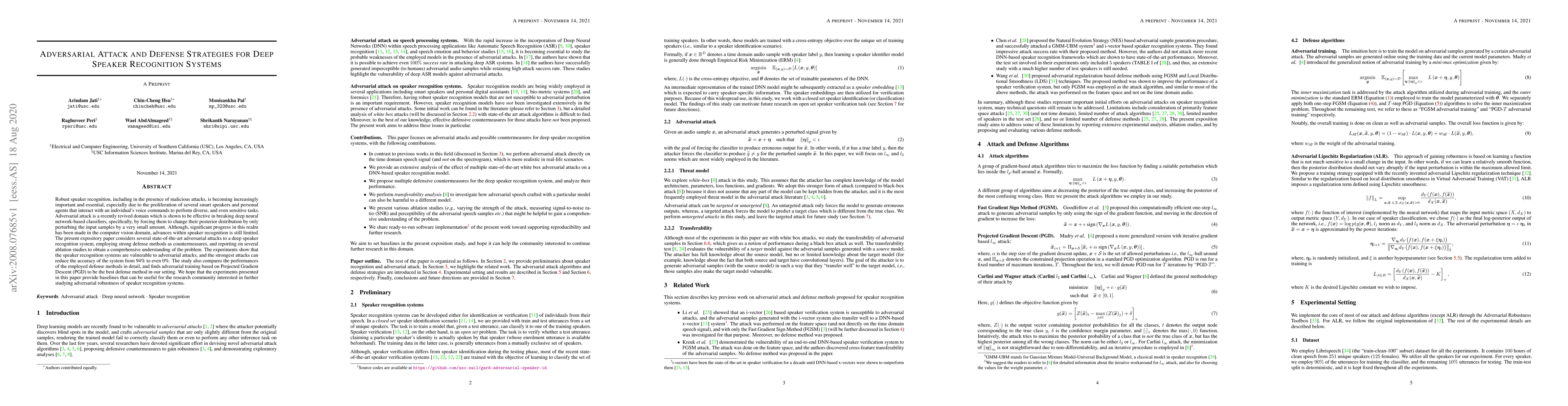 This paper investigates the vulnerability of deep speaker recognition systems to adversarial attacks, demonstrating significant accuracy drops, and evaluates various defense strategies, finding adversarial training based on Projected Gradient Descent (PGD) to be the most effective. The study aims to provide a baseline for future research on enhancing the robustness of speaker recognition systems.
